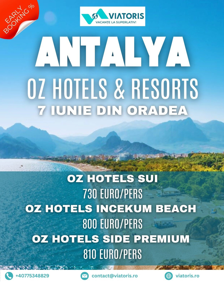 Early booking #Turcia Vacanță în #Antalya la OZ HOTELS & RESORTS, plecare cu avionul din #Oradea 7 iunie!...citeste
