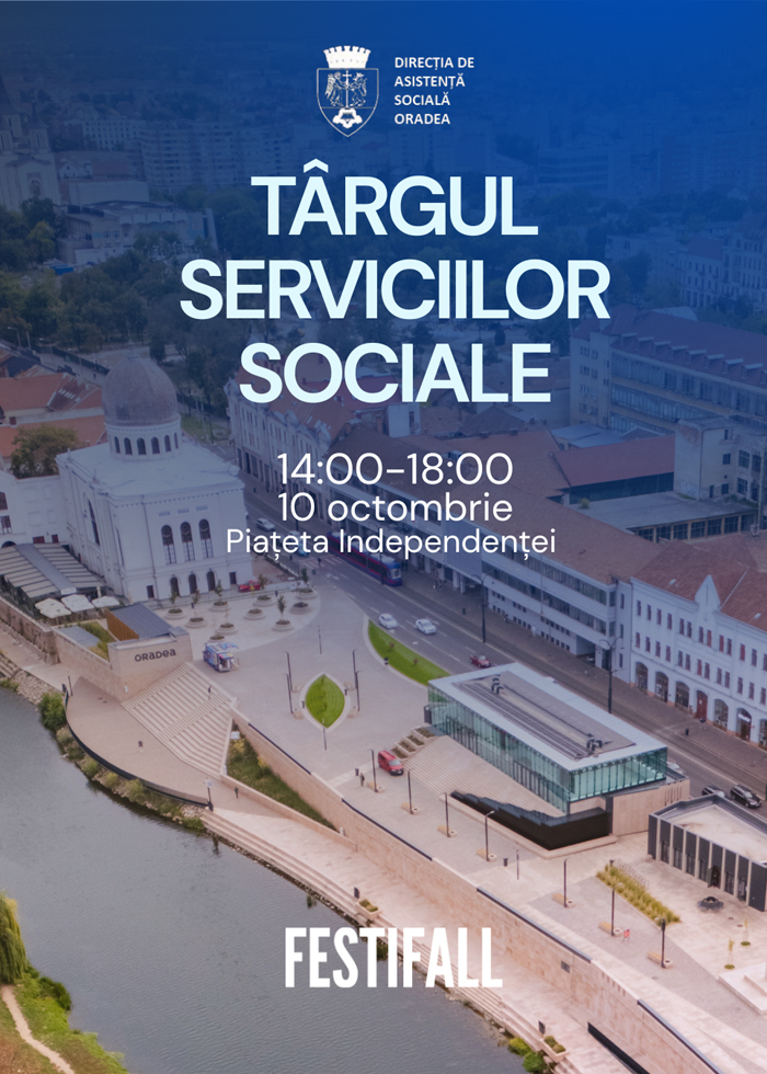 Direcția de Asistență Socială Oradea invită orădenii să participe vineri, 10 octombrie 2025, la Târgul Serviciilor Sociale, un eveniment dedicat solidarității și implicării în comunitate. Târgul va avea loc între orele 14.00 - 18.00, în Piațeta Independenței, în cadrul festivalului Oradea FestiFall....citeste |