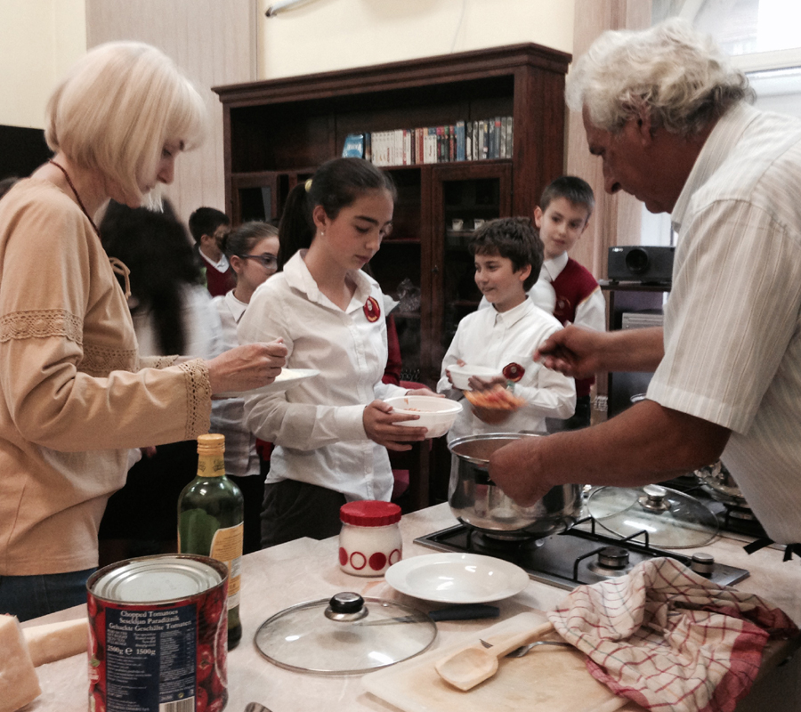 „Elevii sunt foarte receptivi, asimilează toate informaţiile, dar ne-am dorit să le arătăm şi practic cât e de frumoasă Italia, să îi învăţăm să şi gătească italieneşte" a declarat Luigi Marzio, directorul Centrului Cultural Italian.