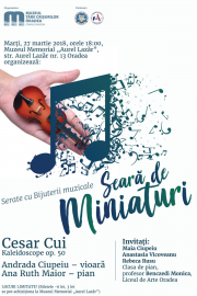 Marţi, 27 martie 2018, ora 18.00, va avea loc, la Muzeul Memorial „Aurel Lazăr", o nouă ediţie a Seratelor cu bijuterii muzicale.