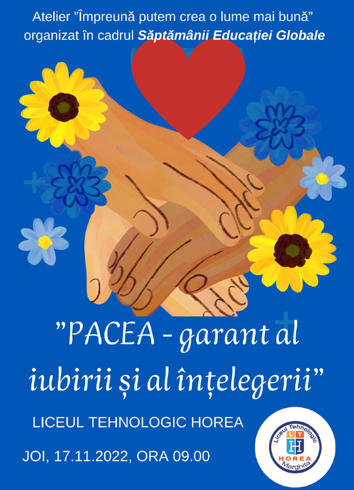 În cadrul Săptămânii Educației Globale, desfășurată în perioada 14-18 noiembrie 2022, elevii și cadrele didactice din cadrul Liceului Tehnologic ,,Horea" Marghita au ales să atragă atenția și să înalțe mesaje de PACE întregii comunități.