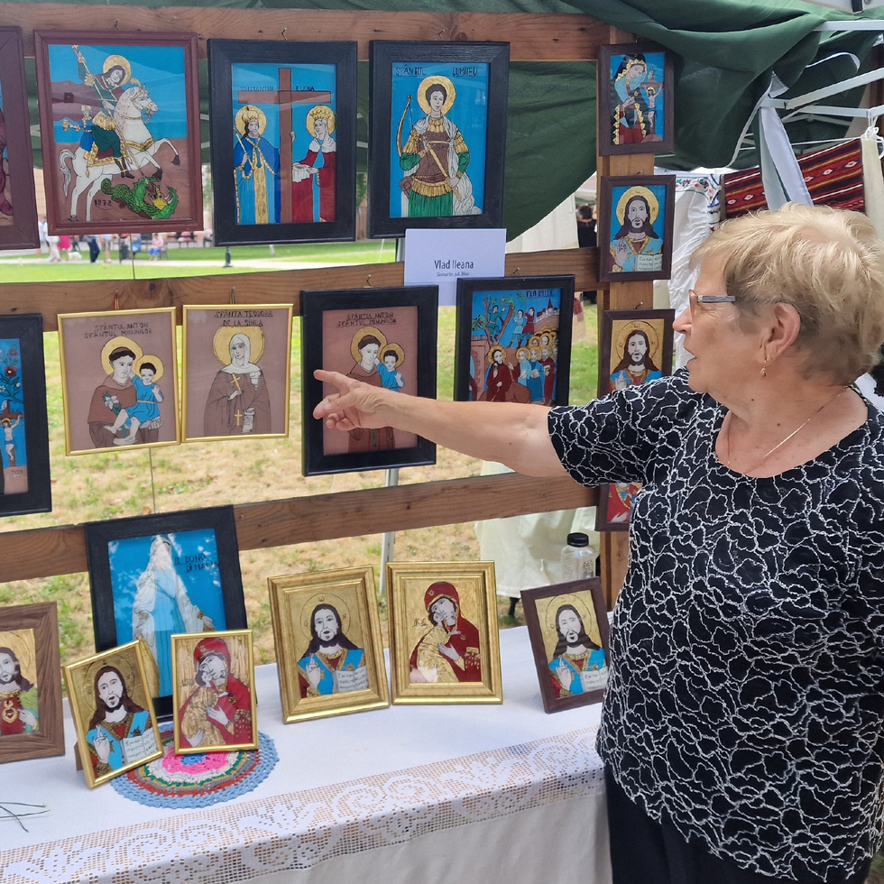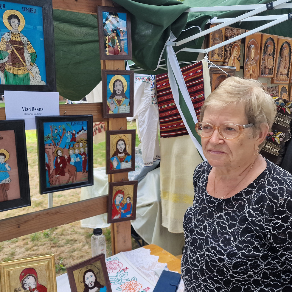 Pe doamna Ileana Vlad, din Sânmartin, am cunoscut-o cu mulți ani înainte, ca pe un meșter popular nelipsit de la Târgul meșterilor populari organizat la Oradea, prezentându-și colecția sa de icoane pe sticlă.