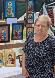 Aceasta este doamna Ileana Vlad - ,,Învățător cu suflet de artist", vorba unor colegi de breaslă, și un meșter popular cu suflet mare, care fericește atâta lume cu icoanele pe care le pictează cu bucuria împărtășită în numele și întru cinstirea Mântuitorului nostru Iisus Hristos și a Maicii Sfinte.