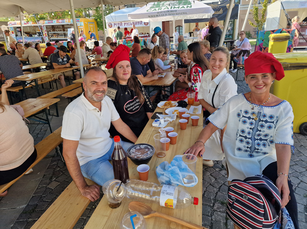 Mai întâi, ne-am salutat prietenii de la Colegiul Tehnic ,,Mihai Viteazul", nelipsiți de la târgurile și evenimentele culinare, unde se pregătesc preparate după rețete tradiționale de Bihor. Echipa domnului director, prof. dr. Ruben Filimon, a fost la înălțime și de această dată, pregătind niște sarmale cu păsat ca la mama acasă, vorba Danei.
