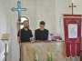 În fața altarului, am avut un sobor impresionant: alături de părintele Alexandru Ciucle, au slujit: părintele protopop de Marghita, Pr. Călin Cotrău, Pr. Gheorghe Bubui (fiu al satului), Pr. Ioan Codorean (de la Biserica cu Lună), diacon Daniel Cristea (Biserica cu Lună), Pr. Cosmin Lascu (Palota), Pr. Pop Marius (Oradea - Tineretului), Pr. Nicolae Alb (Burzuc), Pr. Lakatos Ștefan (Oradea - Piața Țăranilor), Pr. Alexandru Dulca (Săbolciu), iar Mihai Ciucle, cântărețul, a avut alături, în strană, colegi de clasă (de la Liceul Ortodox ,,Episcop Roman Ciorogariu"): Ionuț Sturz, Ionuț Tripon și Petru Șipoș, precum și colegi mai tineri: Luca Lascu și Bogdan Fildan, cu toții fiind cântăreți ai Pr. Lakatos Ștefan. Dintre invitații evenimentului, vom aminti doar două nume: domnul Ioan Mang, fost deputat, și primarul comunei, domnul Gavril Herman.
