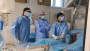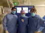Foto 2: Imagine din sala de intervenții cu cheagul de sânge extras de la nivelul creierului la finalul trombectomiei cu numărul 100 de la la SCJU Bihor (De la stânga la dreapta: Dr. Mihai GHERMAN, Dr. Dan MIHOC, Dr. Sebastian BOANCĂ).