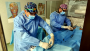 Foto 3: Imagine din sala de intervenții din timpul unei angiografii diagnostice. (De la stânga la dreapta - teh. Mircea IACOB, Dr. Dan MIHOC)