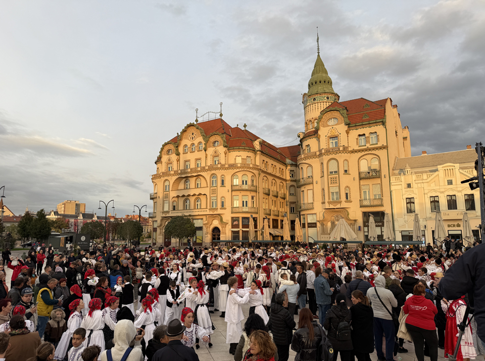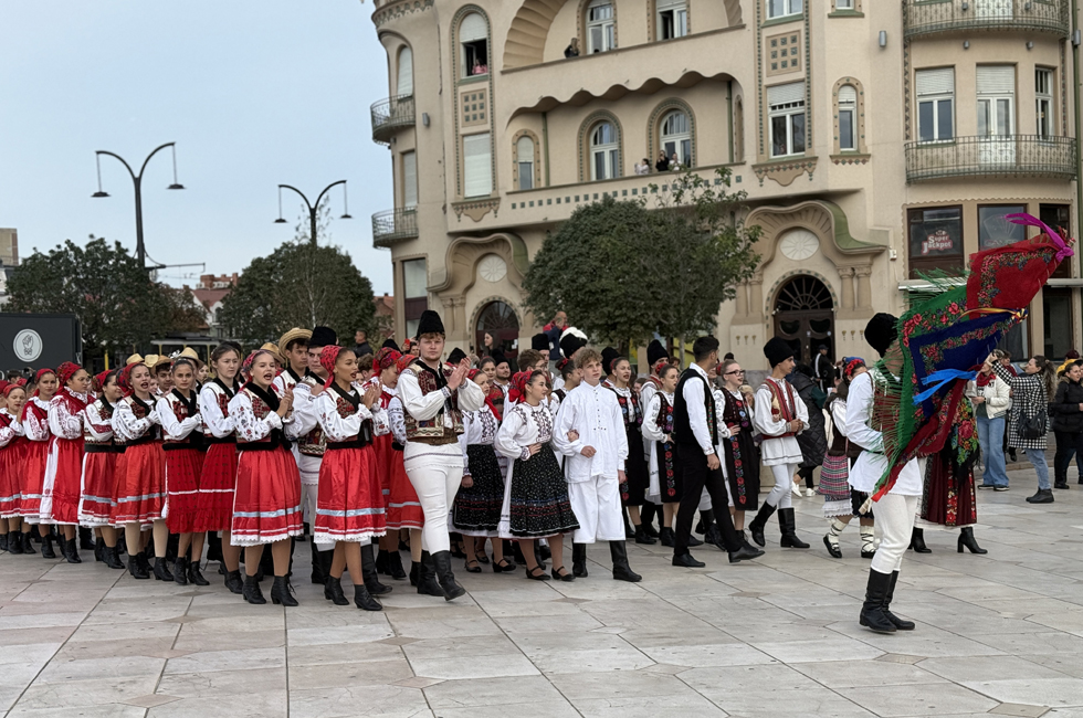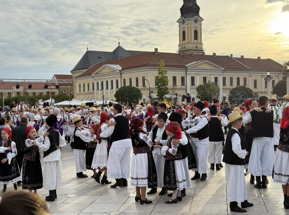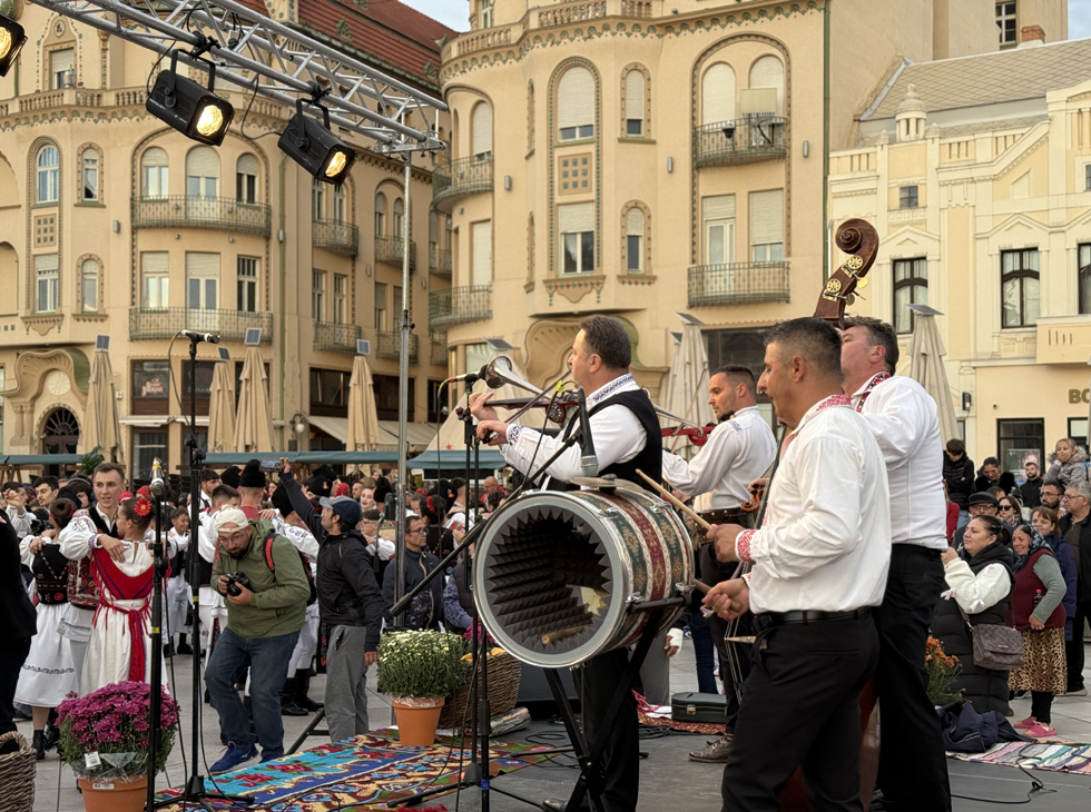 Joi, 2 octombrie 2025, Piața Unirii din Oradea s-a transformat într-o adevărată scenă a tradițiilor, găzduind evenimentul „Higheghe și vin", organizat de Centrul de Cultură al județului Bihor și Consiliul Județean Bihor, în parteneriat cu Visit Oradea și Primăria Municipiului Oradea.