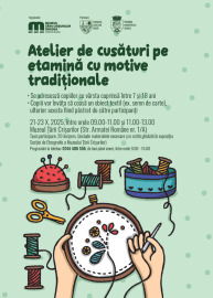 Muzeul Țării Crișurilor Oradea - Complex Muzeal organizează, în parteneriat cu Consiliul Județean Bihor și Primăria Municipiului Oradea, atelierul de cusături pe etamină cu motive tradiționale. Acesta este adresat copiilor cu vârsta cuprinsă între 7 și 18 ani și are ca scop promovarea motivelor tradiționale specifice textilelor din Țara Crișurilor. Copiii vor învăța să coasă un obiect textil (ex. semn de carte) cu materiale puse la dispoziție de către Muzeul Țării Crișurilor, ulterior obiectul fiind păstrat de către participanți.