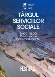 Direcția de Asistență Socială Oradea invită orădenii să participe vineri, 10 octombrie 2025, la Târgul Serviciilor Sociale, un eveniment dedicat solidarității și implicării în comunitate. Târgul va avea loc între orele 14.00 - 18.00, în Piațeta Independenței, în cadrul festivalului Oradea FestiFall.