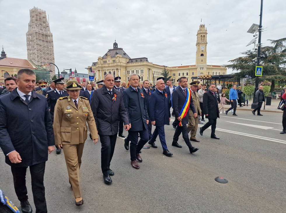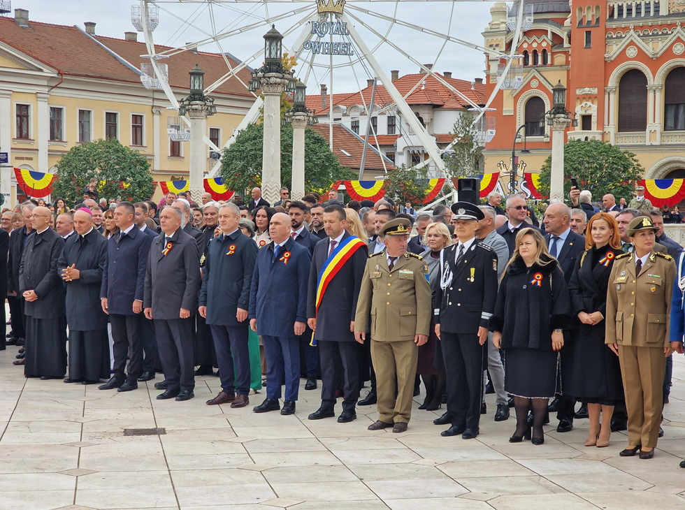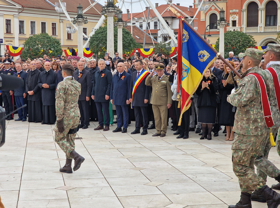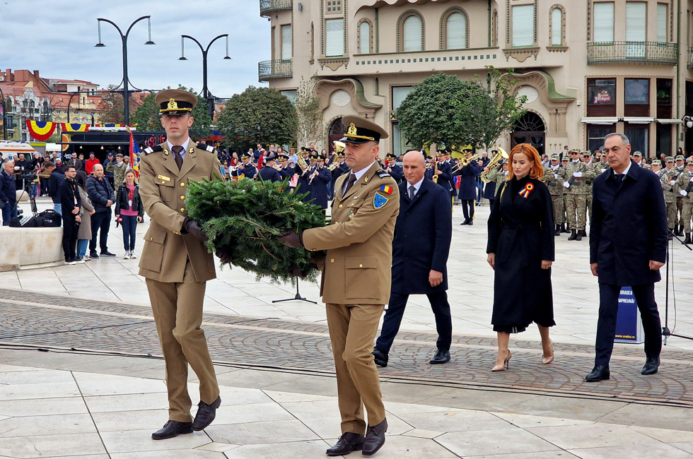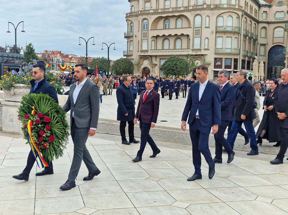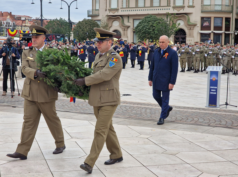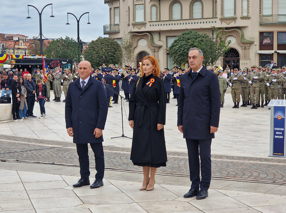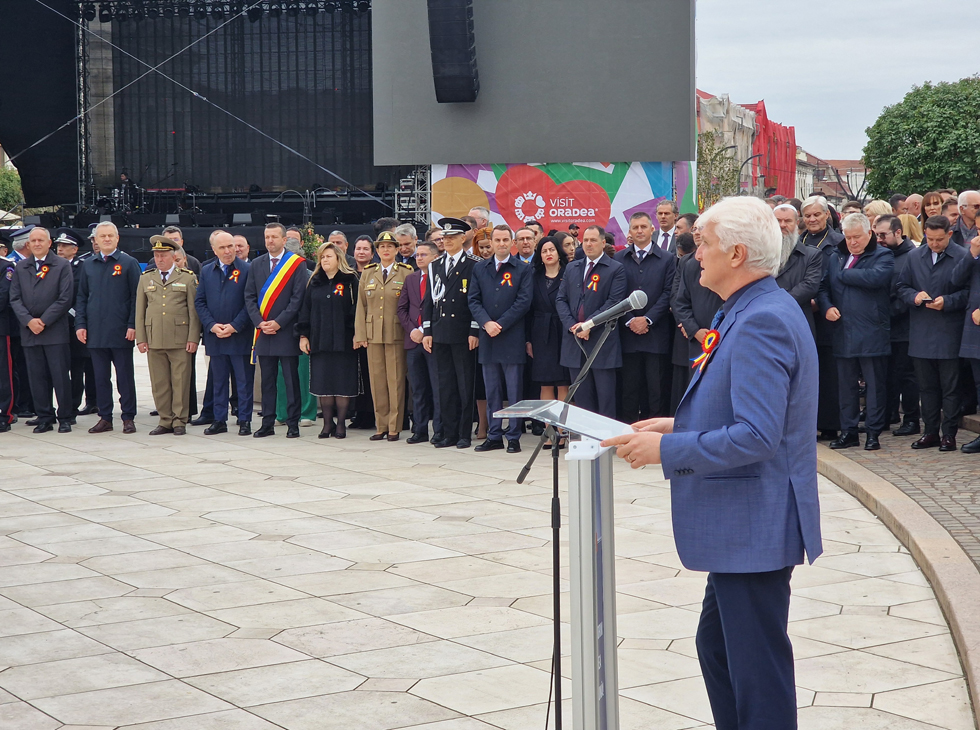 Aceste două date ne arată același adevăr fundamental: în vremuri grele, aici s-au ridicat oameni de caracter. Acești oameni nu au fugit și nu fug nici azi din fața încercărilor, ci au avut și au curajul, credința, viziunea și hotărârea de a construi o țară. Astăzi, când privim spre Oradea modernă, trebuie să recunoaștem că adevărata noastră forță izvorăște din respectul față de principiile fundamentale care ghidează relația statului cu cetățenii: onestitate, eficiență și responsabilitate, atât pentru generațiile de astăzi, cât și pentru generațiile viitoare", a spus domnul primar Florin Birta în cuvântul rostit în Piața Unirii, la ceremonialul militar-religios organizat de Ziua Oradiei.