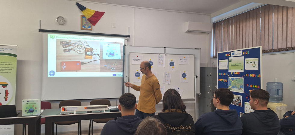 Conferința de informare și diseminare a proiectelor Erasmus+ de la Colegiul Tehnic ,,Traian Vuia", Oradea: Proiect Erasmus+KA220 ,,Developing solutions to sustainability using IoT - Dezvoltarea de soluții pentru sustenabilitate folosind Internetul lucrurilor" - Nr. 2022-1-PT01-KA220-VET-000090202 și Proiect Erasmus+ Acreditare Erasmus în domeniul Educației și Formării Profesionale Cod acreditare: 2020-1-RO01-KA120-VET-0953693 - Perioada de implementare: 01.03.2021-31.12.2027.