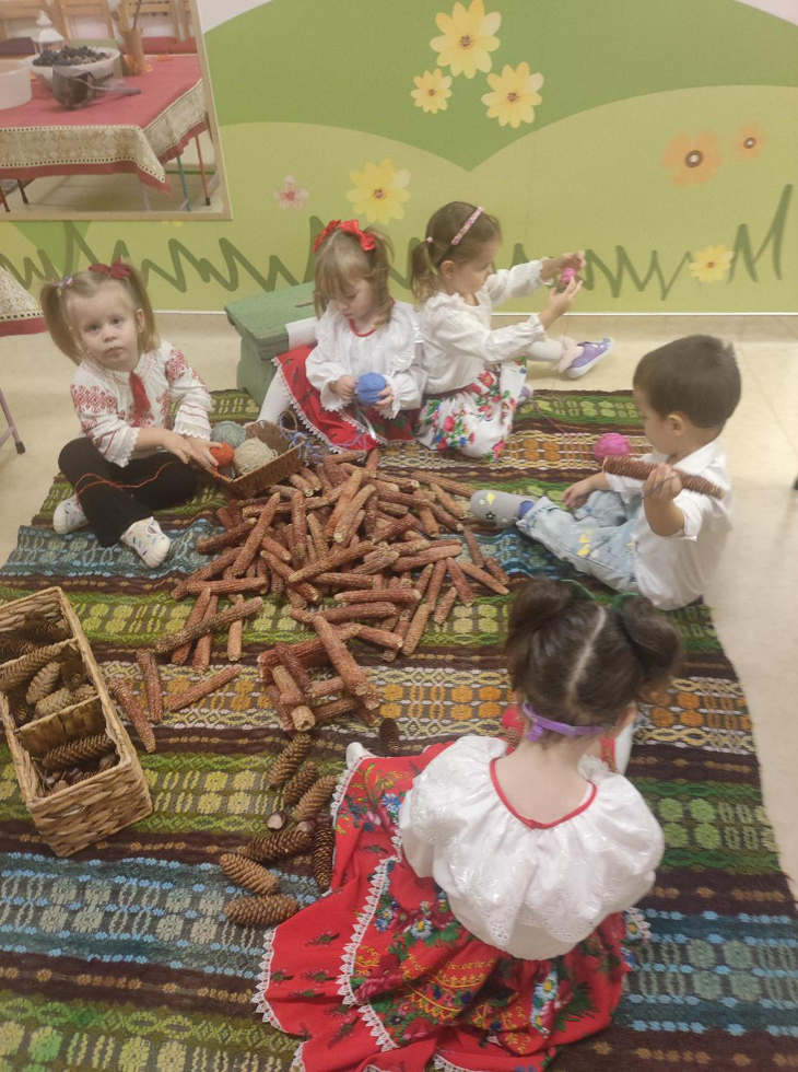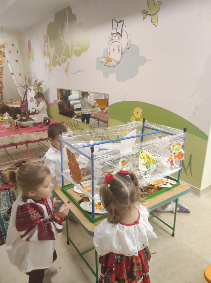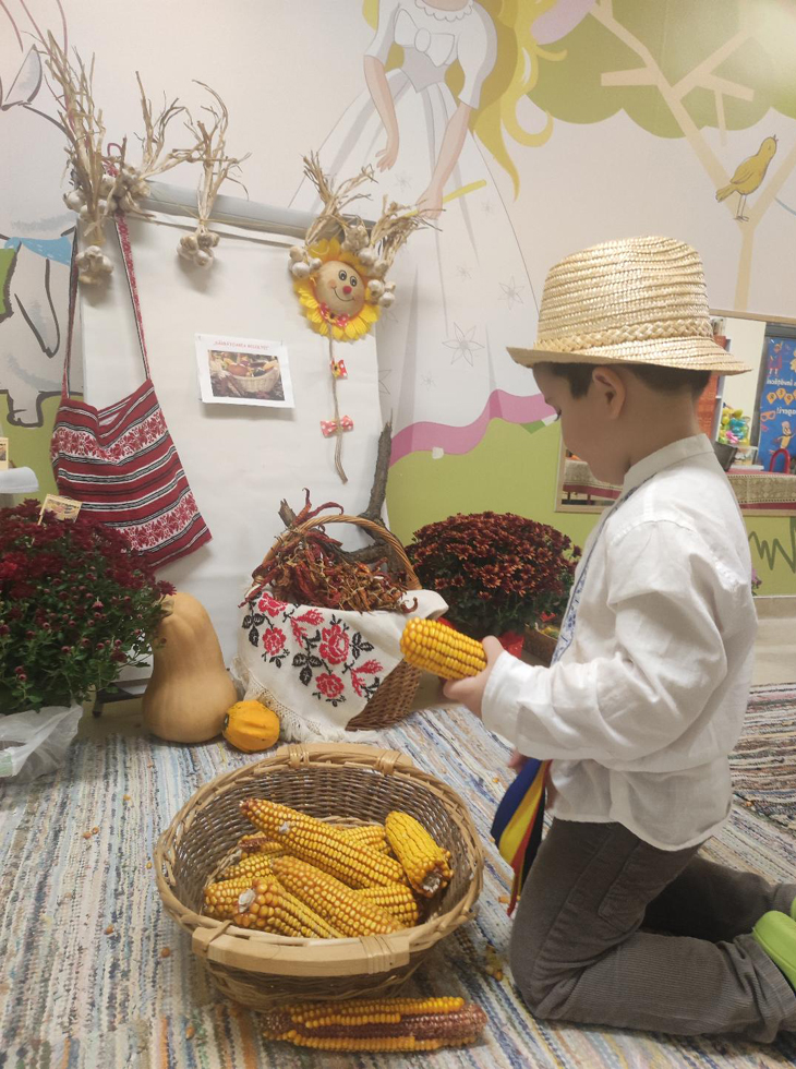 Copiii au sfărâmat porumb, au stors struguri, au spart nuci, au pictat, au confecționat păpuși din pănuși de porumb și s-au jucat cu minunățiile adunate din natura darnică a Reginei Toamna...