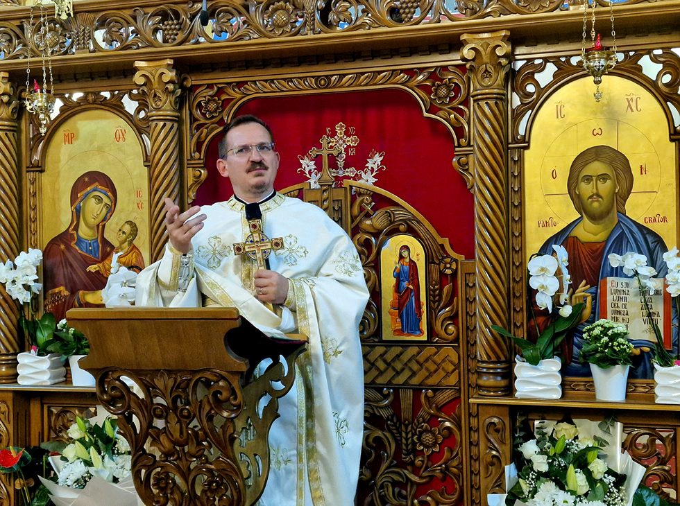 În cadrul Sfintei Liturghii, Cuvântul de învățătură ne-a fost pus la suflet de Părintele dr. Cristian Marge. Dintru început, părintele a precizat faptul că astăzi, 26 octombrie 2025, avem o îndoită sărbătoare: În primul rând este Ziua sfințirii picturii Catedralei Naționale (din București), și tot astăzi, îl prăznuim pe ocrotitorul Sfintei Biserici, pe Marele Mucenic Dimitrie, Izvorâtorul de Mir.