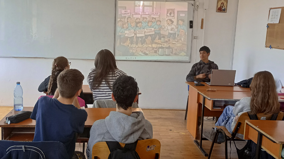 De la pajiștile verzi ale copilăriei, până la cele pe care, peste ani, de-a lungul carierei didactice am avut ocazia să concertez cu elevii mei, am simțit mereu cum natura ne inspiră și ne disciplinează. În acea ieșire memorabilă în natură, când am dirijat corul de voci de copii al școlii pe o pajiște verde, am trăit o emoție unică de parcă însăși natura ne acompania. Priveliștea unui deal urcat cu trudă, dar coborât cu sufletul plin de liniște, rămâne pentru mine imaginea perfectă a energizării naturale. Așa a apărut ideea ca, în școală, să aduc această energie verde în activitățile noastre și în obiceiurile zilnice. Cu fiecare ediție, Săptămâna verde a devenit mai mult decât un program impus: un cadru de învățare vie, în care elevii și profesorii de la această școală (Școala Gimnazială ,,Avram Iancu") se pot regăsi ca echipă. Am îmbinat activități educative, artistice și practice: am vorbit despre poluare, reciclare, protejarea pădurilor, am plantat pomi, am avut ateliere de ceaiuri medicinale, ecologizare, dar am mers și mai departe - spre energia verde din alimentație și sănătate. Anul acesta, în cadrul Proiectului educativ județean „Acces la educație incluzivă facilitat prin arte și educație pentru sănătate" pe care-l coordonez, am căzut de acord împreună cu echipa de la școala aceasta: prof. Claudia Covaci, Alina Mitrașca, Adela Bochiș, Anca Ciupa, Ramona Țărău și partenerii: Școala Gimnazială „Oltea Doamna" (dir. Florina Musca, Cristiana Vidican), C.J.R.A.E. Bihor (dir. Cristina Maria Avrigeanu, Olimpia Marc, Nadia Poleac), Colegiul Național ,,Iosif Vulcan" (dir. Simona Nicoleta Martin, Patricia Maria Marian), Școala Gimnazială ,,Dimitrie Cantemir" (dir. Anca Teodora Codău, Bianca Georgiana Bara), Școala Gimnazială ,,Dacia" (dir. Alin Florin Novac-Iuhas, Cosmina Mariana Pure, Gheorghina Lavinia Popa), Școala Gimnazială ,,Aurel Pop" Oșorhei (dir. Adrian-Sorin Mohuț, Alina Bianca Drugaci), Școala Gimnazială „Ioan Filip" Sântandrei /structura: G. P. P. Nr. 1 Sântandrei (dir. Ioana-Aurelia Șerfezi, Cristina Mariana Ursz), G.P.P. Nr. 25 Oradea (dir. Lucia Elena Balaj, Ancuța Dumea), G.P.P. „Aleodor" Oradea (dir. Diana Heredea, Ada Kovacs, Laura Sălăjan, Ioana Porțan), Liceul Tehnologic ,,Felix" Sânmartin (dir. Ramona Bocșan, Alina Maria Roșu), Liceul Teoretic „Aurel Lazăr" (dir. Ioana Claudia Mladin, Livia Ghiurcuța, Andreea Mada, Rodica Berdie, Flavia Oprean), Liceul de Arte (dir. Mihaela Bondor, Larisa Zopota), Biblioteca Județeană „Gheorghe Șincai" (dir. Ancuța Florina Șchiop, Anca Nuțaș), Centrul Școlar de Educație Incluzivă Nr. 1 (dir. Teodora Pantazi, Rodica Haș) să alegem tema complexă comună „Băuturi în culori vii - Înlocuirea cola și cafea cu shake-uri și smoothie-uri sănătoase" încadrând în programul național ,,Săptămâna verde", ca parte integrată în tema Consum și produse sustenabile și în tema Energie verde. Ne-am propus să facem o paralelă între energia verde din natură și energia verde alimentară, fără aditivi și cofeină. Copiii au pregătit propriile băuturi din fructe și legume de sezon, reducând consumul de produse procesate și ambalaje. S-au implicat cu entuziasm în colectarea de capace pentru reciclare. Cadrele didactice au creat resurse educaționale originale: poezii („Leacul vindecării la prețul calității") clipuri video („Adevărul din ceașcă - Renunță smart!", „Bei cola, vezi ce se poate întâmpla!") cântece pentru corul claselor de elevi („Renunț la otrava neagră", „Educație pentru sănătate", „Mere, stafide") afișe, desene și prezentări PowerPoint despre impactul băuturilor cofeinizate asupra mediului și sănătății. Pentru a susține alegerea băuturilor sănătoase, am adus în discuție și latura științifică. Am prezentat cofeina, care deși oferă o „scânteie rapidă", fiind un stimulent artificial, pe termen lung, obosește organismul. Da, este un stimulent al sistemului nervos central, care blochează receptorii de adenozină - substanța responsabilă de relaxare și somnolență. Pe termen scurt, ea oferă senzația de energie, dar efectul este iluzoriu: urmează epuizare, dependență și tulburări de somn, anxietate, dureri de cap sau palpitații. Studiile arată că metilxantinele (precum cofeina) afectează direct metabolismul celular, cauzând uzură biologică premature, precum un motor alimentat cu combustibil greșit. „Energie pe credit", cum am numit-o noi în cadrul proiectului, nu e energie reală. În schimb, energia naturală - din apă, somn, mișcare și alimentație sănătoasă - oferă rezistență și claritate mentală. Copiii, de la mic la mare, au participat la jocuri de rol și la chestionare („Despre sănătate și băuturi pe bază de cofeină", „Obiceiuri sănătoase pentru dezvoltarea mea"), învățând să distingă între impulsul artificial și energia autentică. Au comparat simplu: | Energie falsă | Energie reală | | Cafea, cola, energizante | Apă, fructe, somn, mișcare | | Dă un impuls scurt, urmat de epuizare | Menține energia constantă și claritate mentală | | Creează dependență | Nu creează dependență | | Poate provoca iritabilitate, anxietate | Susține claritatea și buna dispoziție | | „Foc de paie" - se stinge rapid | „Foc lent" - încălzește toată ziua | Cadrele didactice au prezentat copiilor: „Cafeaua e ca un super-erou cu două fețe - la început te salvează, apoi te prinde în capcană. A bea cafea e ca și cum ai alimenta un motor cu benzină greșită - merge un pic, apoi se strică", în timp ce „apa e secretul cel mai bine păstrat al creierului - fără ea, e ca un telefon fără baterie". A fost creat și un mic test amuzant despre cofeină, iar răspunsurile au provocat zâmbete și dezbateri. „Cofeina e ca o explozie de energie care îți termină b