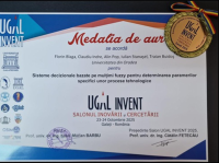 Lucrarea intitulată Development of Fuzzy Set-Based Decision Systems for Determining Technological Process Parameters (Sisteme decizionale bazate pe mulțimi fuzzy pentru determinarea parametrilor specifici unor procese tehnologice) a fost distinsă cu medalia de aur.