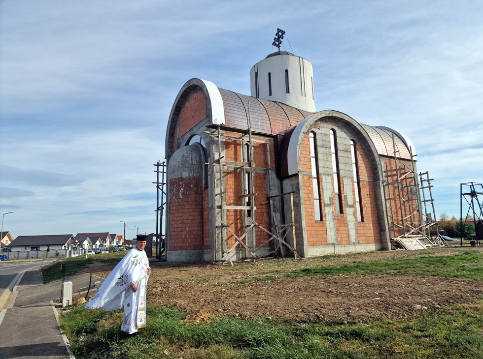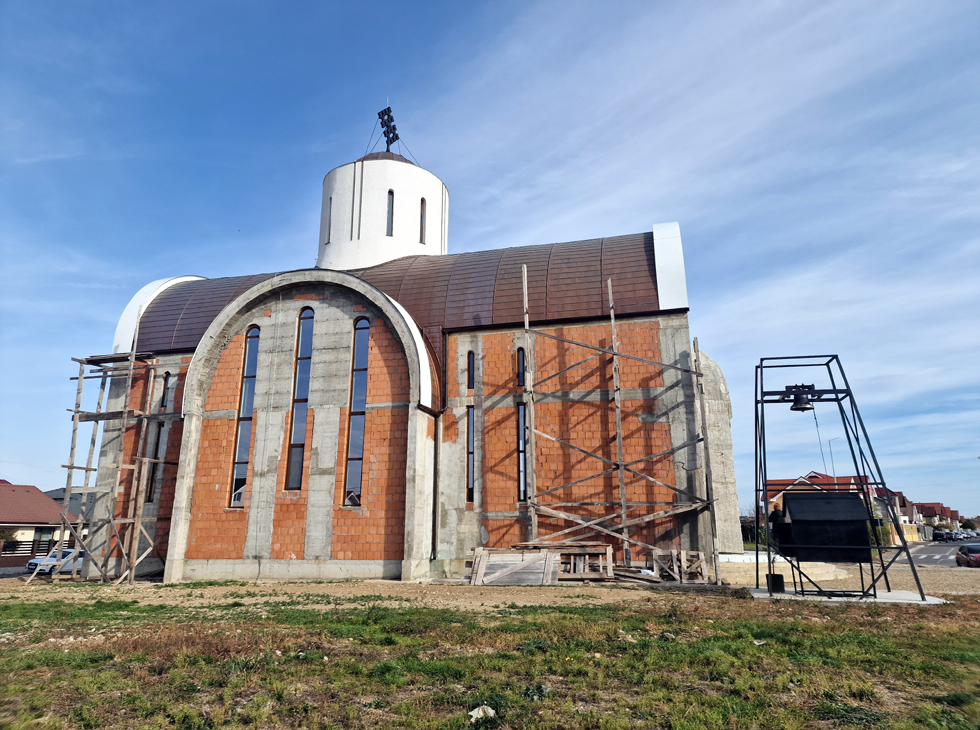 Piatra de temelie a bisericii a fost pusă de Preasfințitul Părinte Sofronie, Episcopul Oradiei, în 6 iunie 2019, zi de sărbătoare a Înălțării Domnului. În decembrie 2020, au început efectiv lucrările cu săparea fundației...