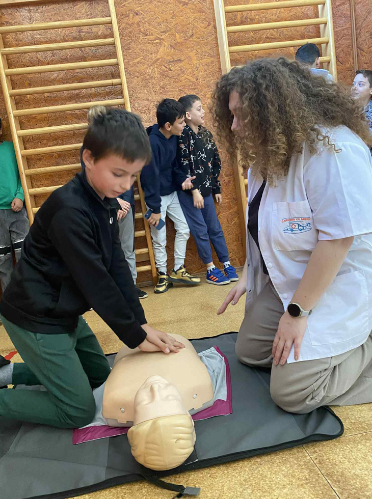 Elevii au avut ocazia să exerseze manevre simple de prim ajutor pe manechine, învățând cum pot salva vieți chiar și prin gesturi mici, dar corecte. Printre cele mai captivante momente a fost demonstrarea metodei Heimlich, folosită în caz de înec cu alimente. O tehnică pe care copiii au avut ocazia să o exerseze practic, învățând prin joc cum un gest simplu poate salva o viață. Atmosfera a fost plină de entuziasm și curiozitate, iar copiii au plecat acasă cu încrederea că pot fi mici eroi în situații reale.