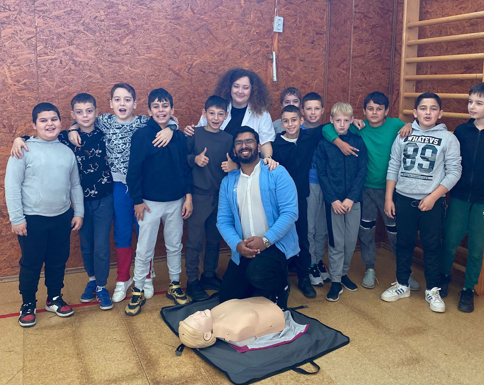 Una dintre cele mai apreciate activități a fost întâlnirea cu Caravana medicilor. Copiii au participat la un curs interactiv de prim ajutor, susținut de cadre medicale dedicate: dr. Jewel Shaju (medic rezident), Voita Maria (studentă), Veres Alexandra (studentă), dr. Timiș Larisa (medic stomatolog) și dr. Isoc Denisa (medic specialist).