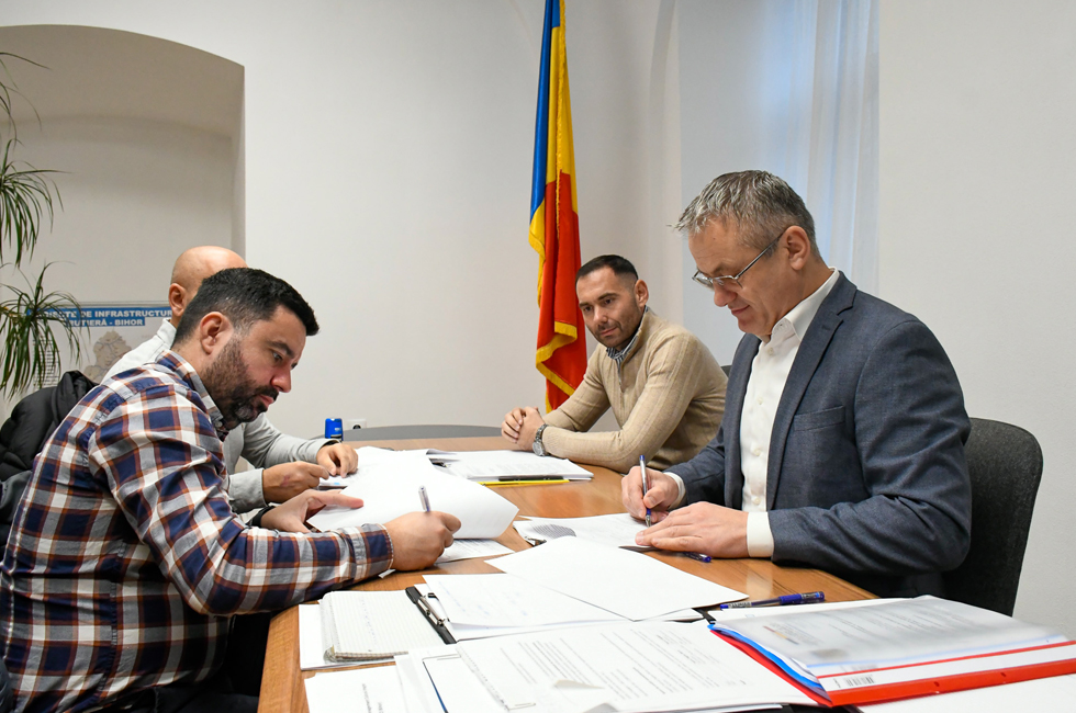 Contractul a fost semnat de Mircea Mălan, președintele Consiliului Județean Bihor, și de reprezentanții firmei PORR Construct, Florin Talabă și Marius Faur, directori de grup.