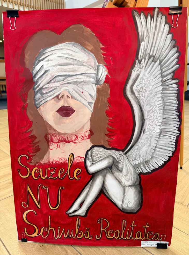 Elevii Liceului de Arte Oradea au dorit să transmită, prin imagine, consecinţele violenţei şi să sensibilizeze astfel, cetăţenii. Toți elevii implicați în proiect au fost răsplătiți cu diplome și premii, iar 12 dintre desenele realizate cu măiestrie de copii au fost selectate pentru a ilustra paginile unui calendar pentru anul 2026, cu mesaje antiviolență. Expoziția de afișe va rămâne deschisă, timp de 10 zile, la Biblioteca Județeană „Gheorghe Șincai" din municipiul Oradea.