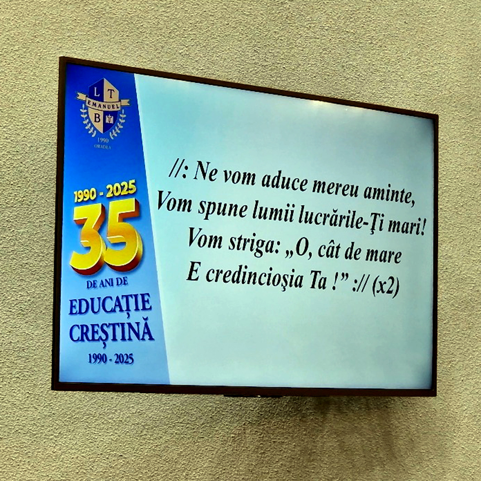 Dacă venim înaintea Ta cu recunoștință pentru sărbătoarea aceasta de-aducere aminte a bunătății și îndurării Tale față de noi. Îți mulțumim pentru cei 35 de ani de existență a liceului. Tu ai fost Cel care ai binecuvântat cu prezența și însoțirea Ta. Îți mulțumim, Doamne, pentru protecția Ta din fiecare zi! Îți mulțumim pentru cadre didactice! Îți mulțumim pentru elevi! Te rugăm, Doamne, ajută-ne să medităm mai mult la frumusețea lucrării Tale! Și în această sărbătoare, să ne aducem aminte de minunata Ta lucrare pe care ai făcut-o pentru noi. Te rugăm, Doamne, să ne cercetezi cu al Tău Cuvânt! (...) Nu putem decât să cântăm și să Te onorăm pentru ceea ce ai făcut pentru noi"!