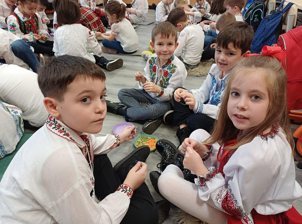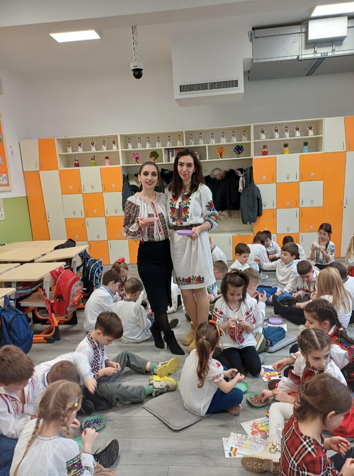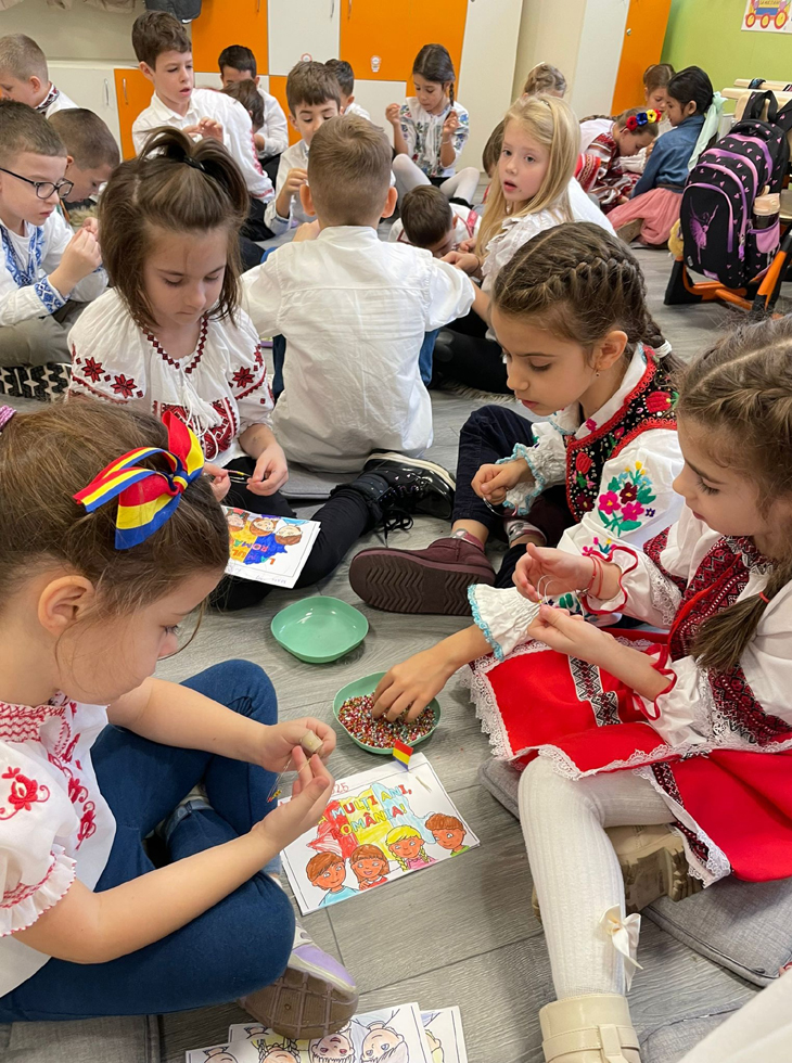 În acest context, au pregătit o şezătoare, unde au ascultat o poveste despre România de ieri şi de azi, au realizat fiecare o brăţară din mărgele, după un anumit cod, înserând în interior trei mărgele cu tricolorul României; s-au apropiat şi s-au împrietenit prin intermediul a două jocuri: Mânuţele se îmbrăţişează şi Glasul proverbelor, amintindu-ne de strămoşii noştri care mereu se vizitau, îşi povesteau bucuriile şi tristeţile, se ajutau la nevoie şi erau mereu cu sufletele calde şi altruiste.