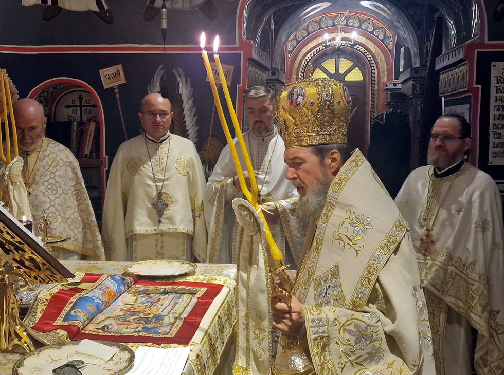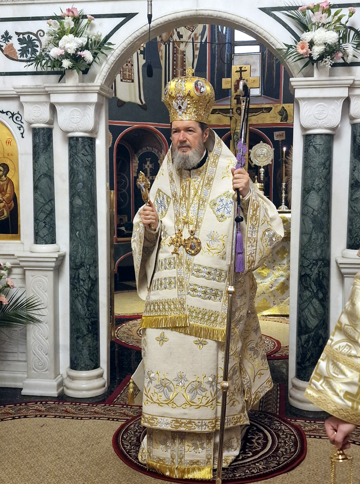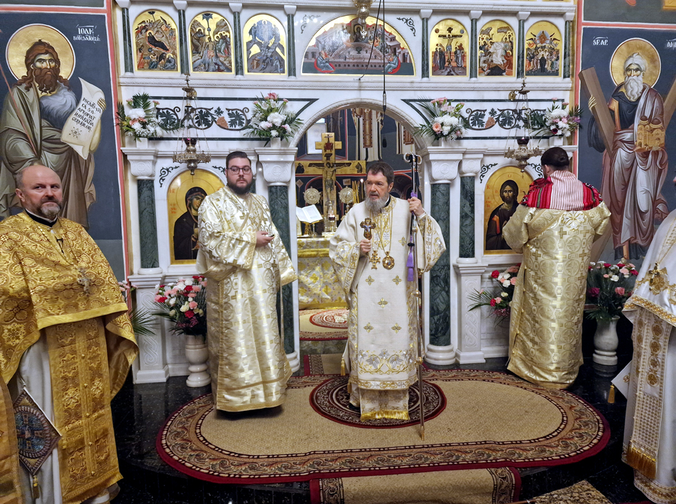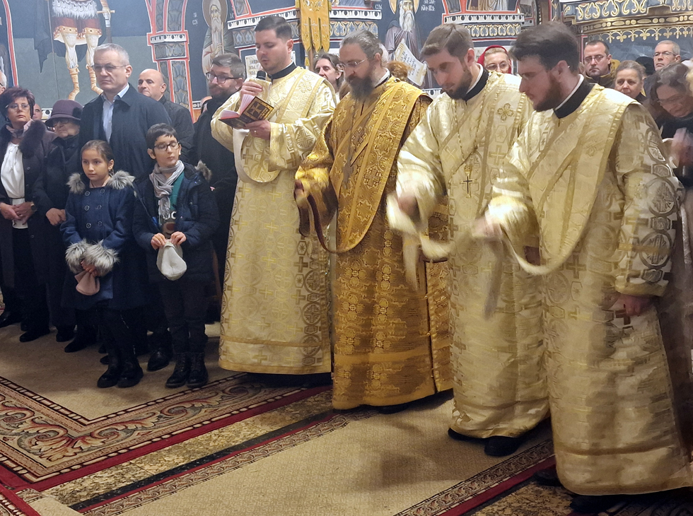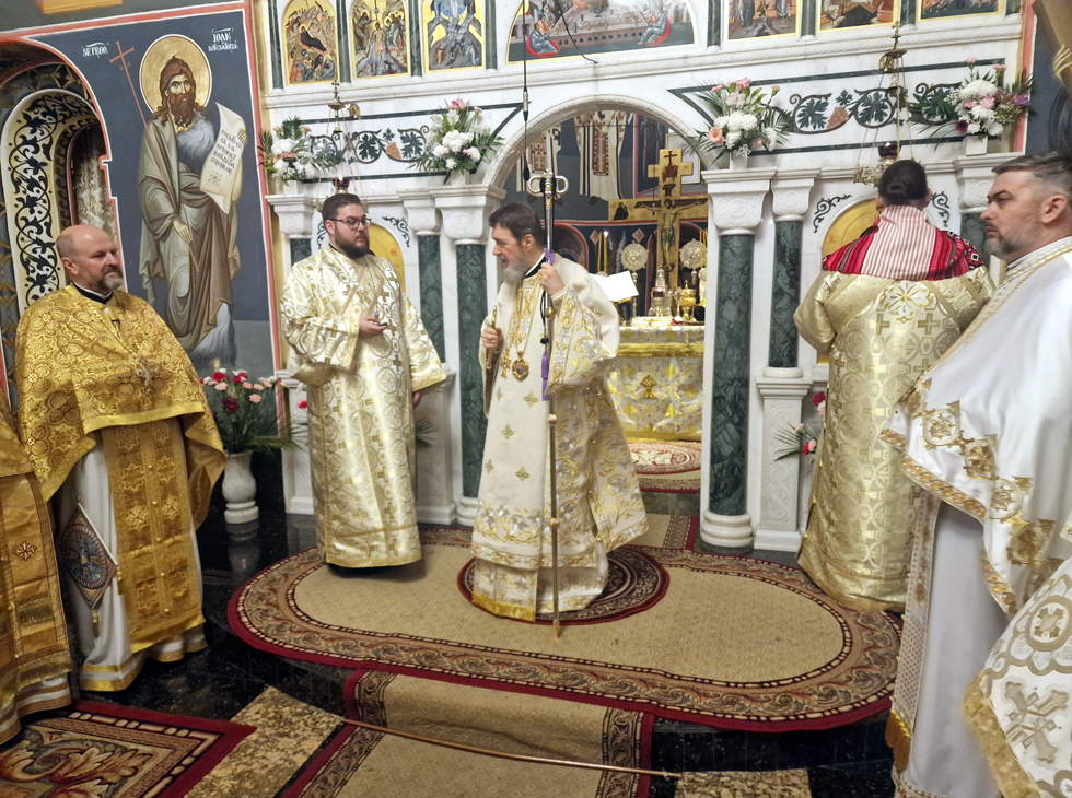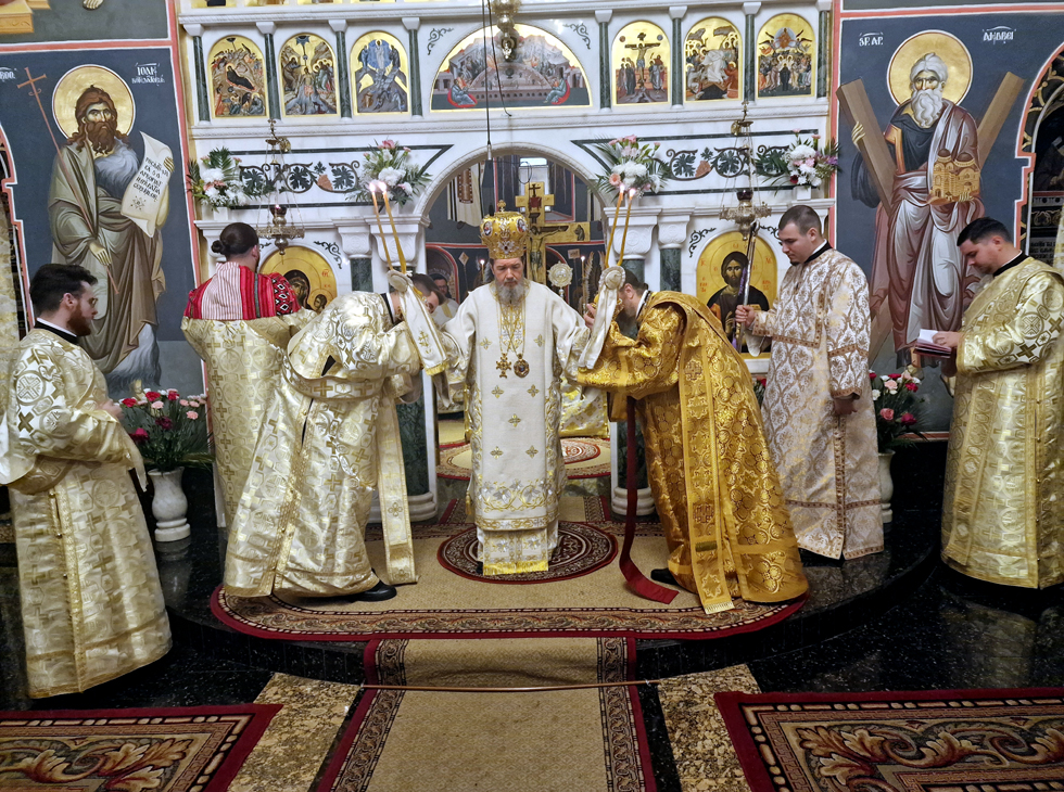 Slujbă arhierească săvârșită de Preasfințitul Părinte Episcop Sofronie, dimpreună cu un sobor numeros de preoți și diaconi