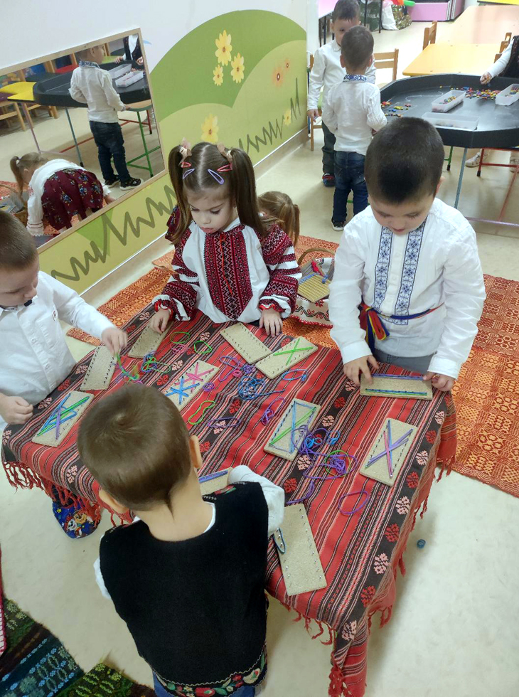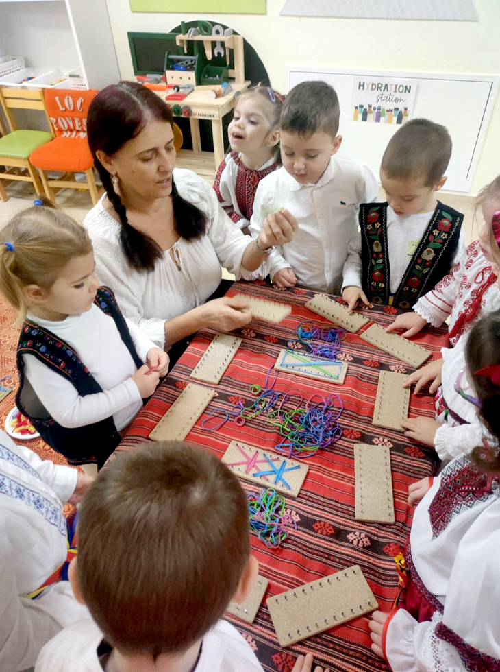 Micuții noștri au făcut cunoștință cu arta populară - au cusut, au țesut și au meșterit piese decorative, cu motive populare, prin tehnici tradiționale, adaptate vârstei lor. Curiozitatea a fost mare, iar implicarea plină de zel!