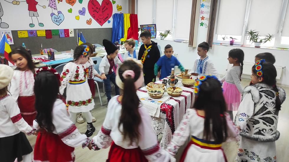 Elevii au intonat Imnul României și au dansat împreună Hora Unirii.