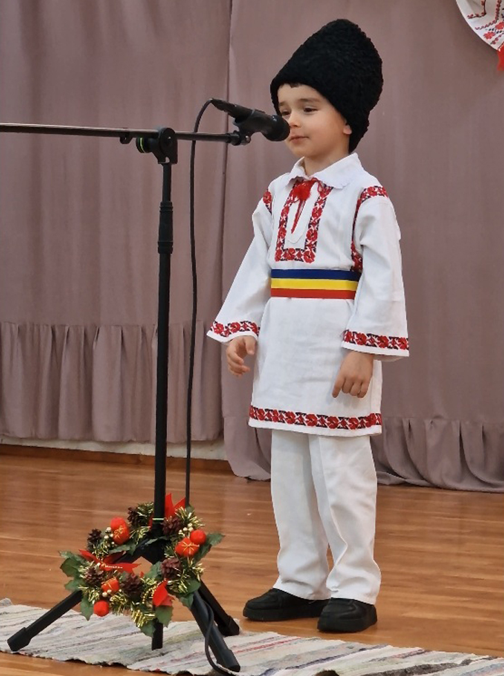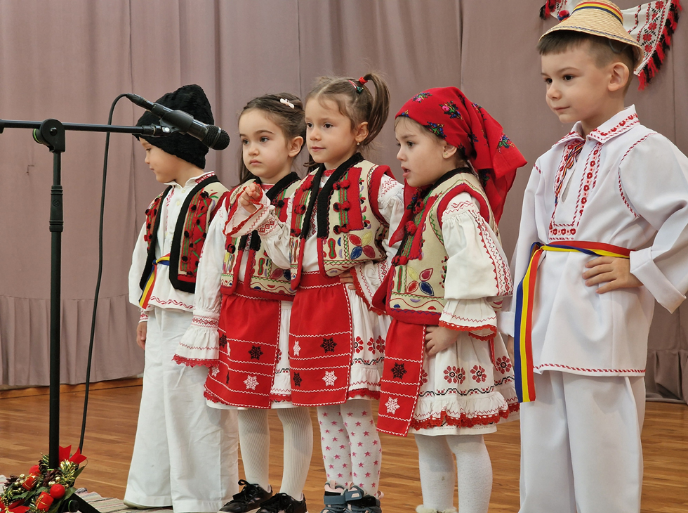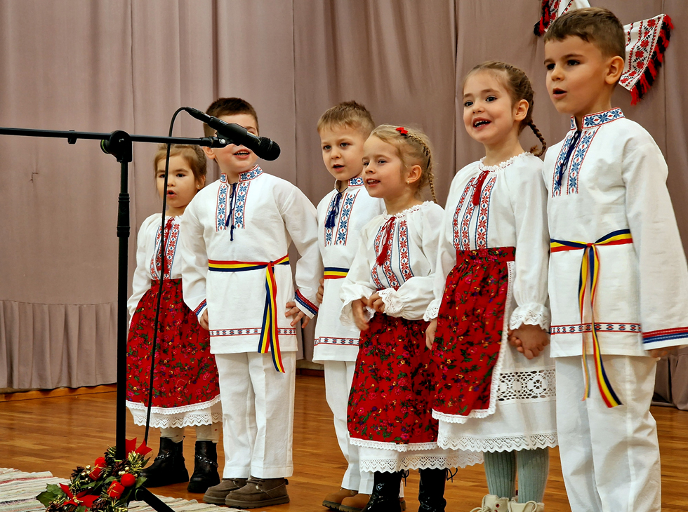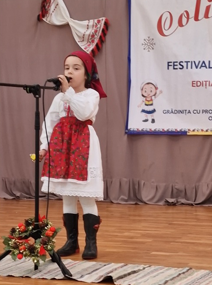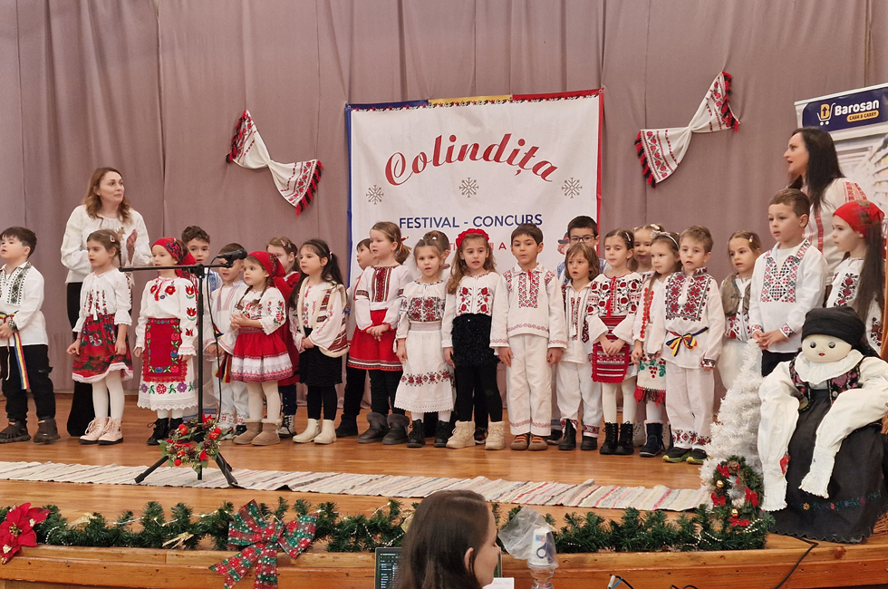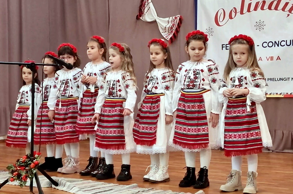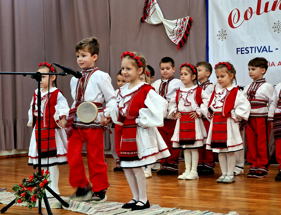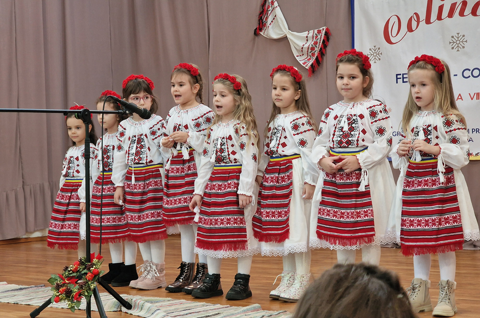 interpretare de colinde românești, obiceiuri de iarnă și dansuri populare din diferite regiuni ale țării.