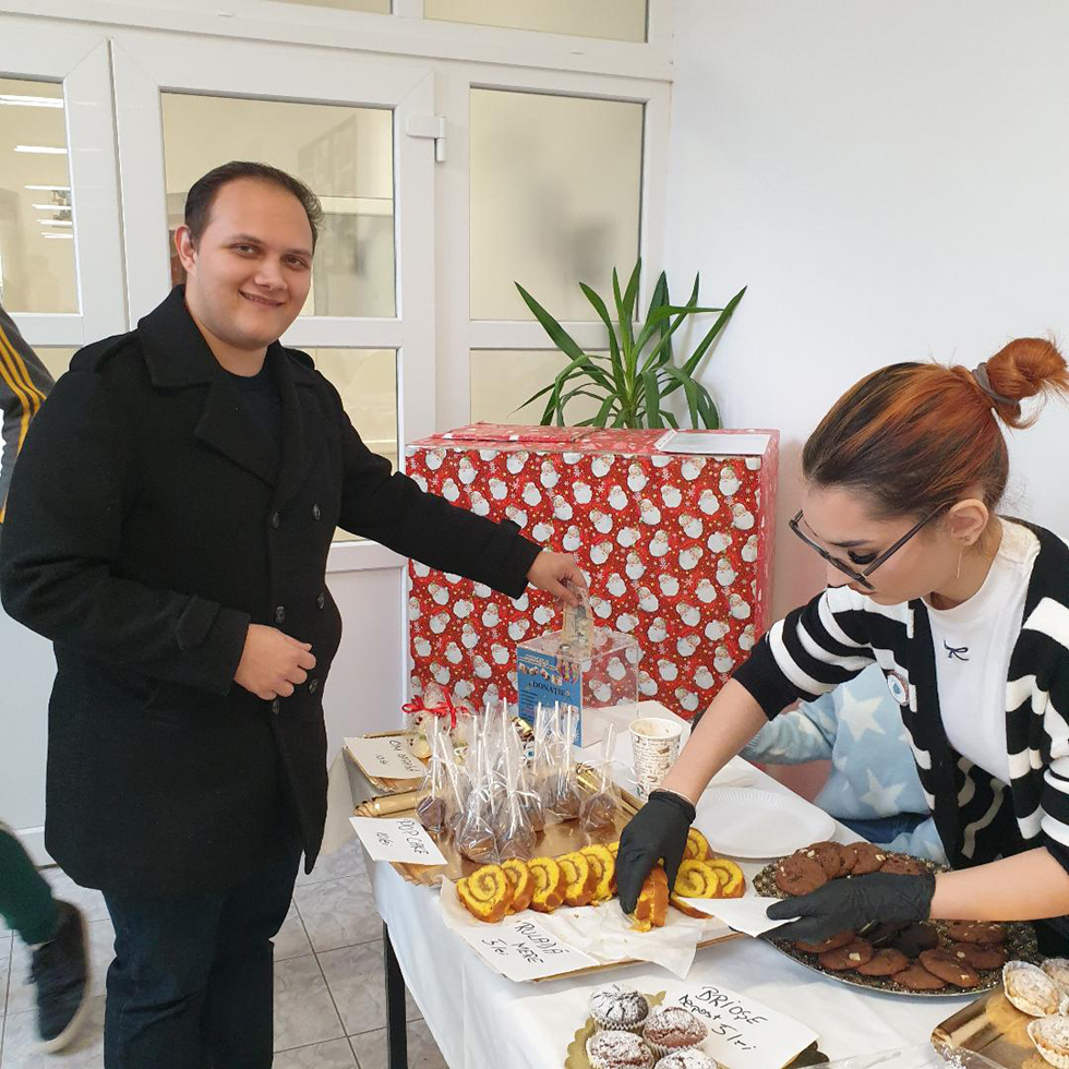 Elevii clasei a XI-a B, specializarea Gastronomie, de la Liceul Tehnologic Nr. 1 din Salonta, au organizat vineri, 5 decembrie 2025, un minunat târg caritabil cu produse dulci, în cadrul proiectului de voluntariat al Asociației Centrul de Psihologie, Logopedie și Autism Bihor, numit „O mână întinsă, dar de Crăciun", sub coordonarea doamnei diriginte, profesor Medve Alina.