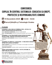 Conferința va avea loc miercuri, 10 decembrie 2025, între orele: 14.00-19.00, la Parcul Științific și Tehnologic Oradea