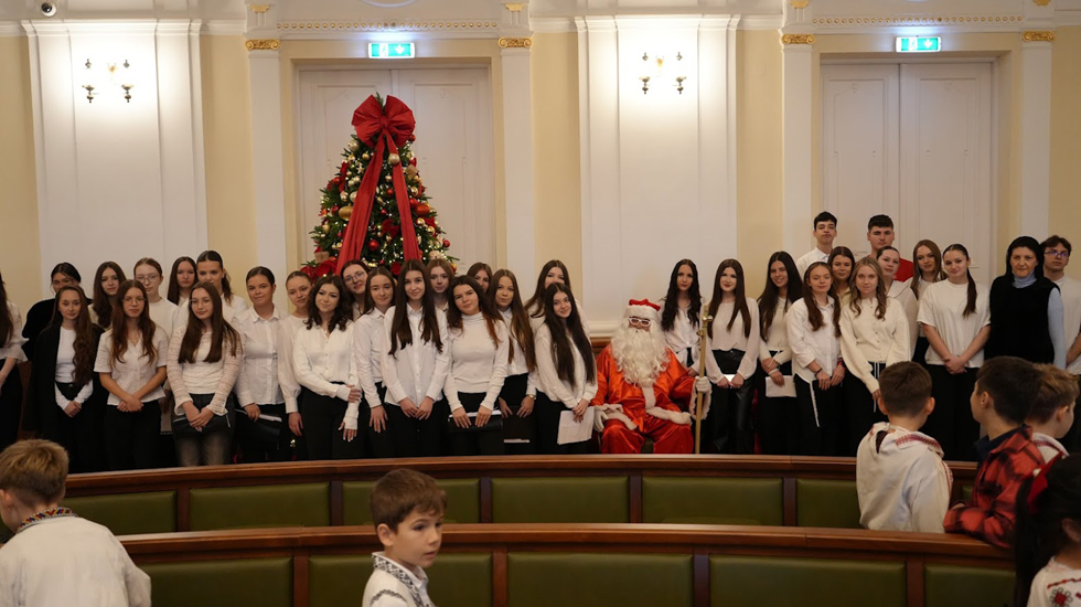 Sala Mare „Traian Moșoiu" a Primăriei Oradea a răsunat de glasurile copiilor de la școli și grădinițe din municipiu, care au oferit recitaluri pline de emoție și entuziasm. Programul artistic a fost deschis de elevii Școlii Gimnaziale „Dacia", urmați de copii de la Grădinița cu Program Prelungit nr. 30, Colegiul Național „Iosif Vulcan", Grădinița cu Program Prelungit nr. 53, Școala „Dimitrie Cantemir", Școala Gimnazială „Oltea Doamna", Liceul Teoretic Penticostal „Betel", Școala Gimnazială „Nicolae Bălcescu", Liceul Teoretic German „Friedrich Schiller", Colegiul Național „Onisifor Ghibu", Liceul Ortodox „Episcop Roman Ciorogariu", Liceul Internațional „Agora" - Grădiniță, Grădinița cu Program Prelungit nr. 50, precum și de reprezentanții Azilului de Noapte.