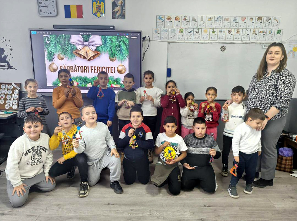 Cu mult entuziasm și imaginație, copiii au decorat planeta Pământ în spirit de sărbătoare, folosind materiale diverse și tehnici creative: un brad realizat din hârtie mototolită, brăduți confecționați din bețe și clopoței, dar și brăduți din ipsos, care au fost pictați cu multă atenție și bucurie.