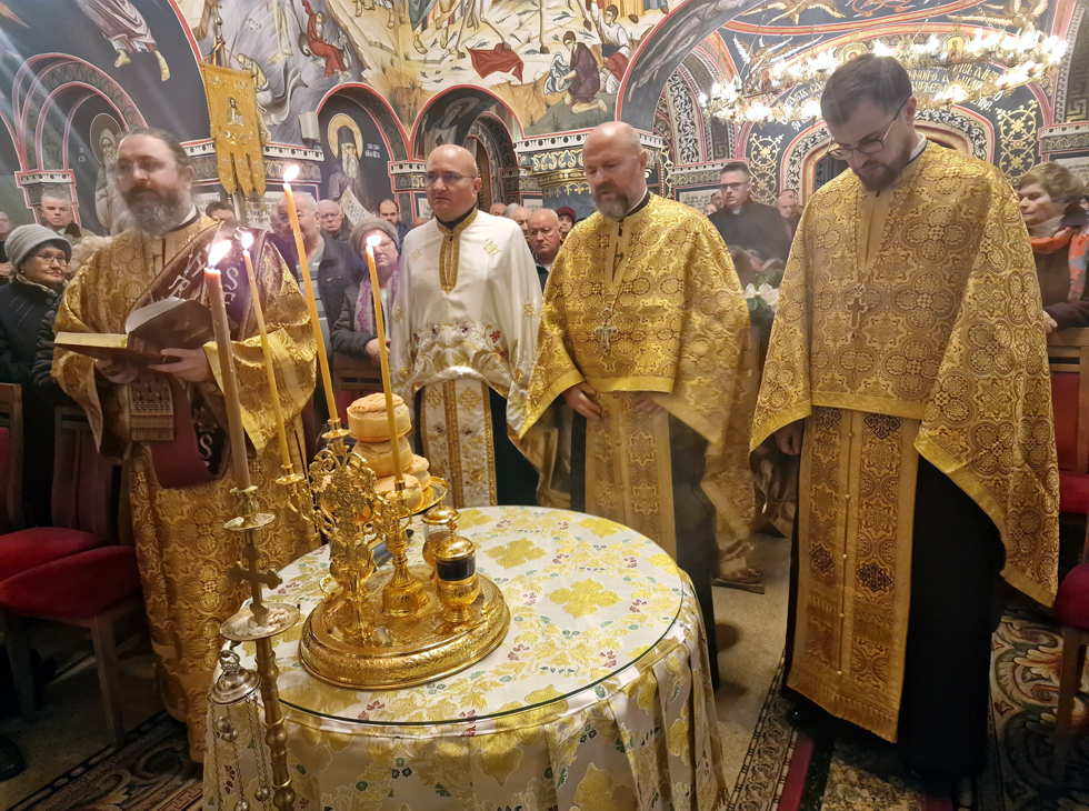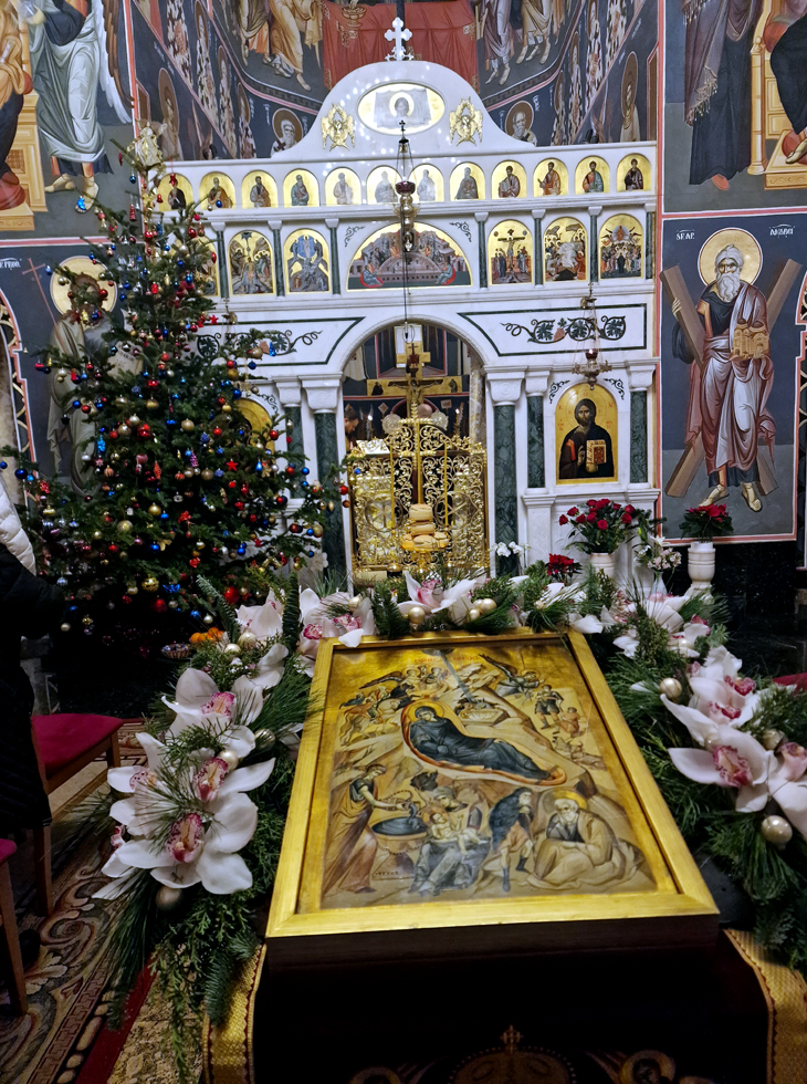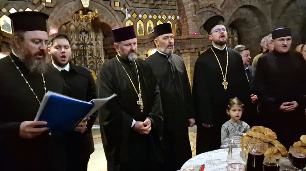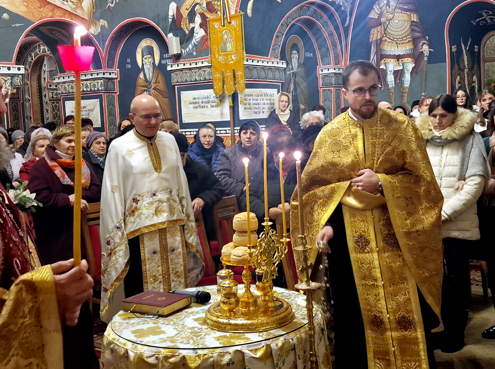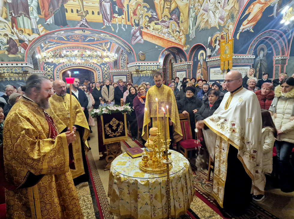 Aseară, după slujba (Pavecernița Mare, dimpreună cu Litia) săvârșită de slujitorii sfântului altar, Părintele vicar Vasile Bota, Părintele Daniel Bota și Părintele arhidiacon Mihai Dragoș, cărora li s-a alăturat Părintele Marius-Dorel Pop, am avut colindători speciali, pe Părintele diacon Sebastian Gheorghe Balaj (care este și solist al Operei Române) dimpreună cu solistele grupului.