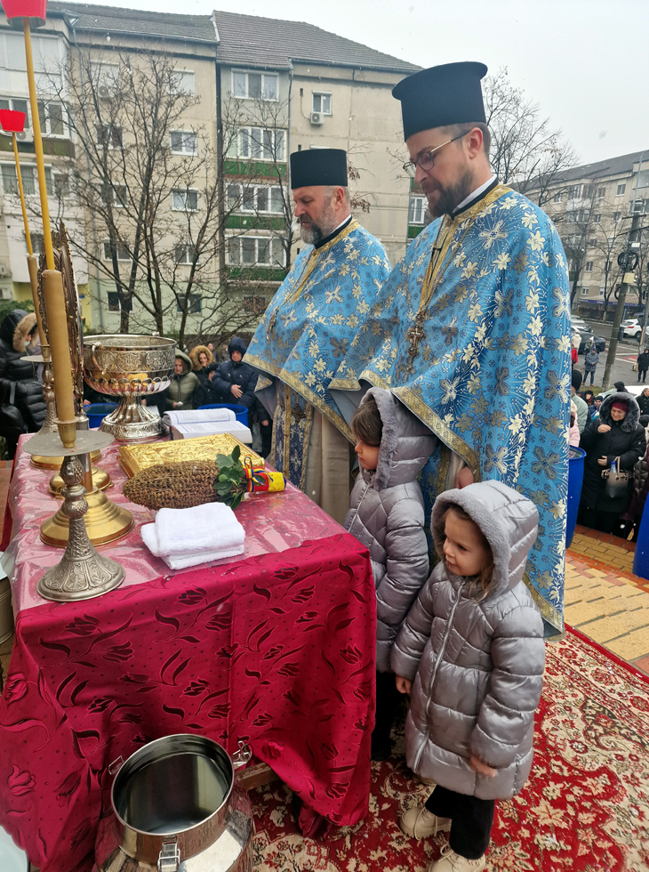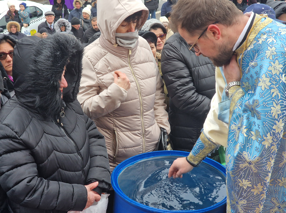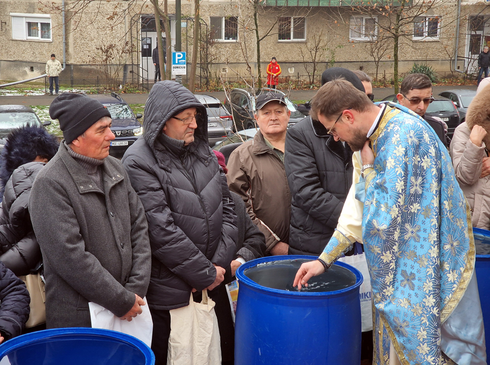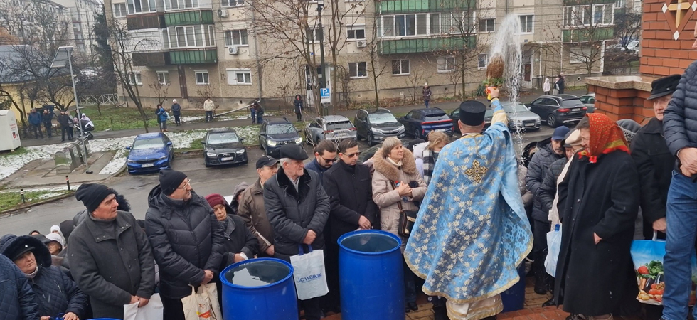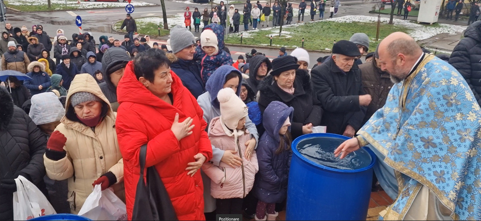 Apa a fost sfințită de Părintele vicar Vasile Bota și Părintele Daniel Bota, iar la sfârșit, consilierii, în bună rânduială, i-au bucurat pe credincioși cu Agheasmă sfințită în sticlele din plastic aduse de-acasă.