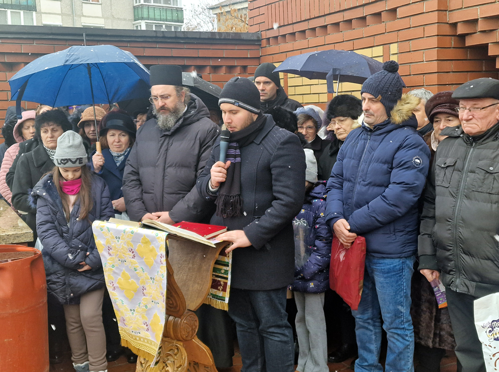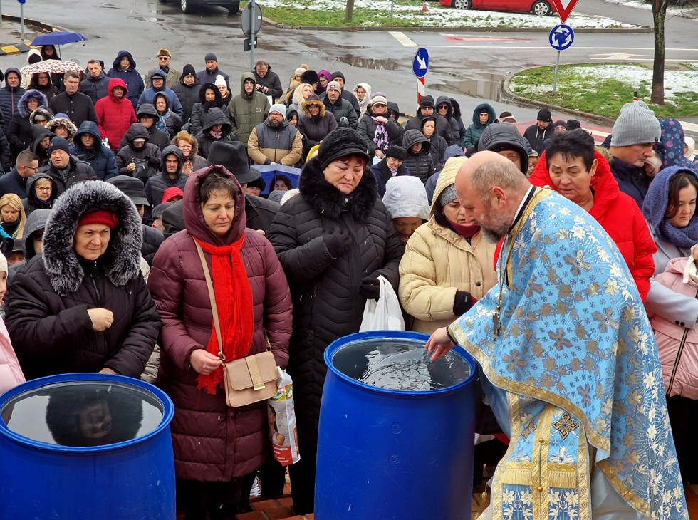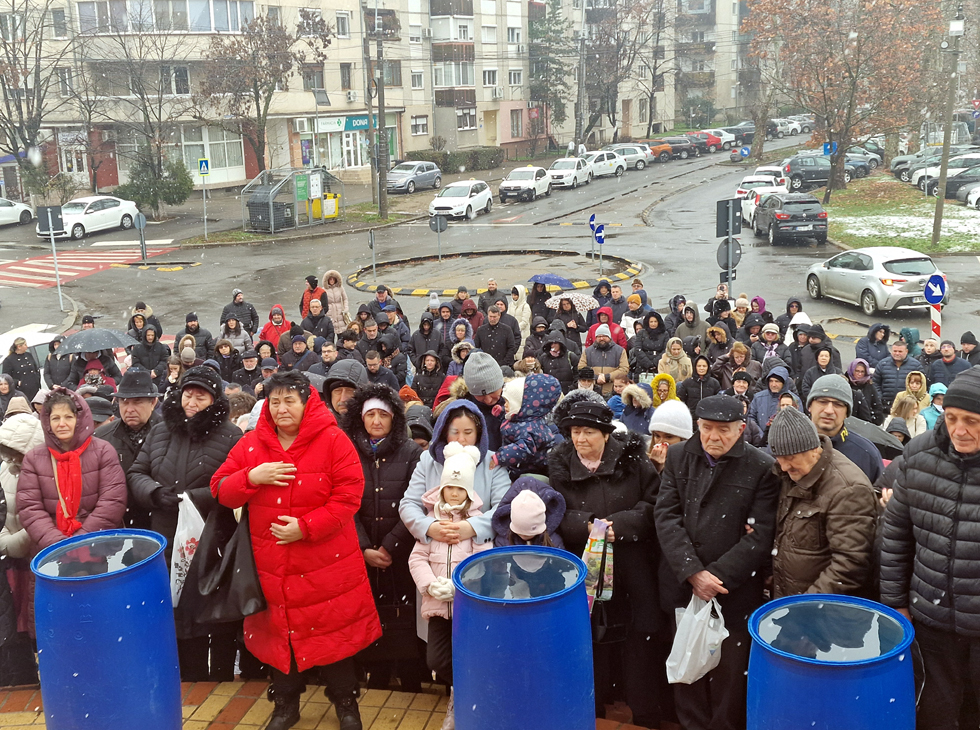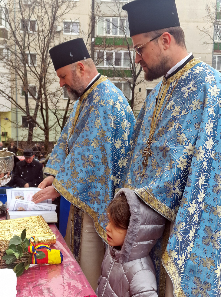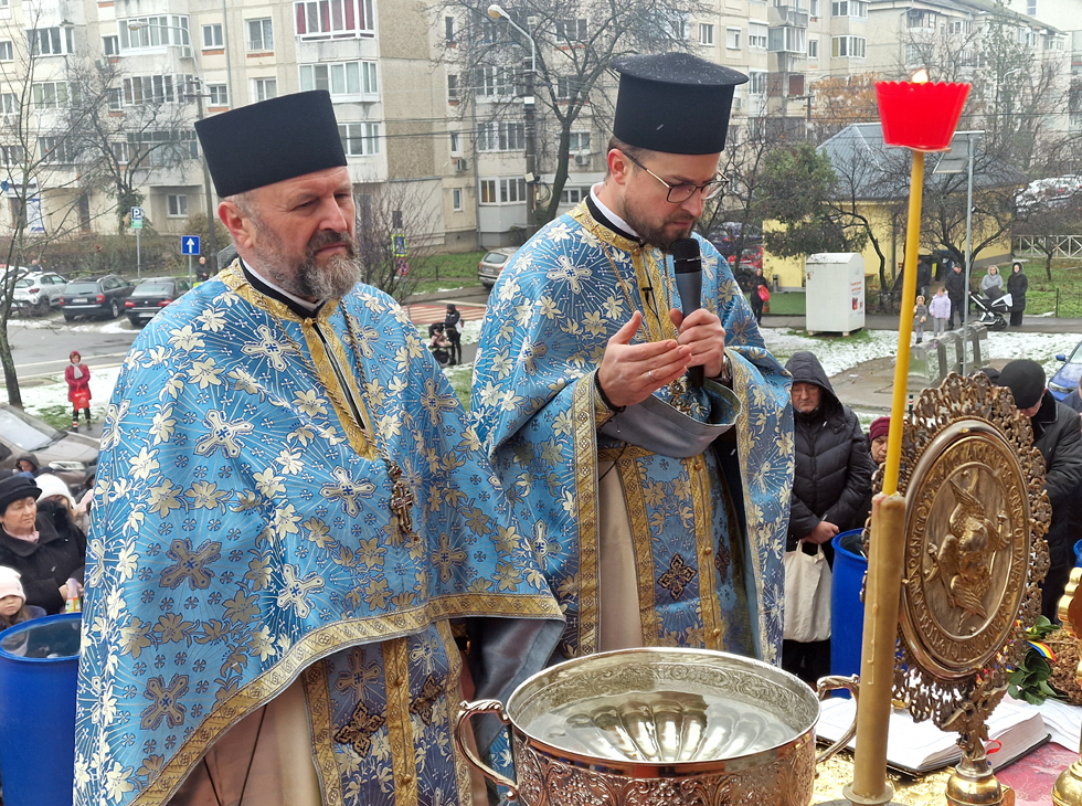 Apa a fost sfințită de Părintele vicar Vasile Bota și Părintele Daniel Bota, iar la sfârșit, consilierii, în bună rânduială, i-au bucurat pe credincioși cu Agheasmă sfințită în sticlele din plastic aduse de-acasă.