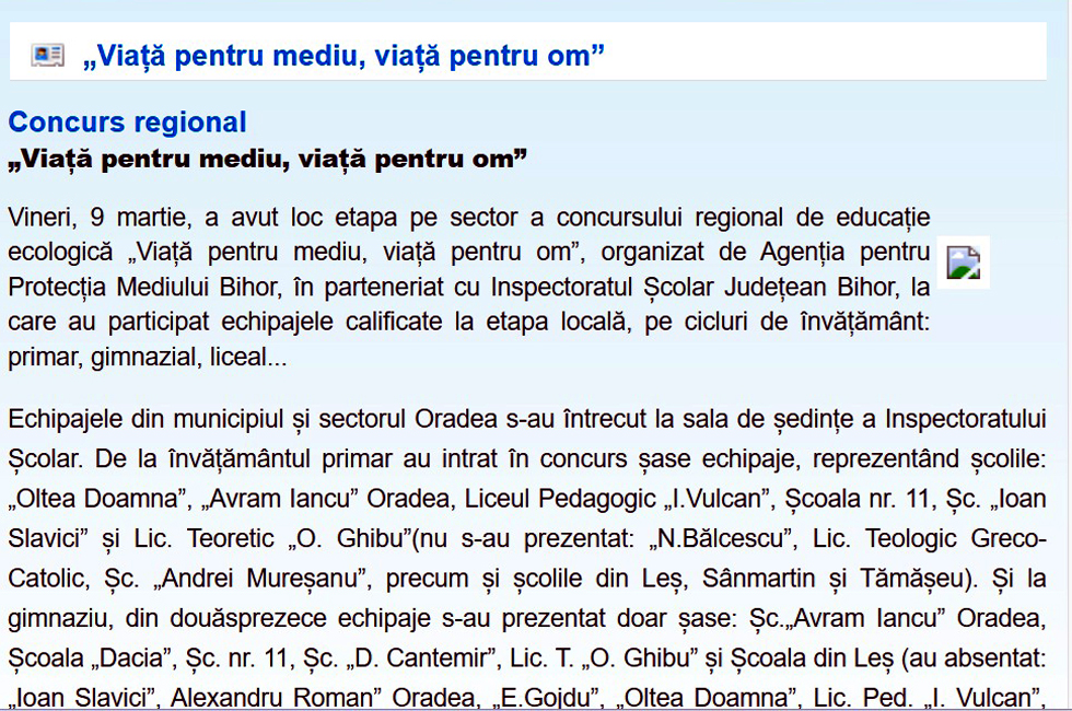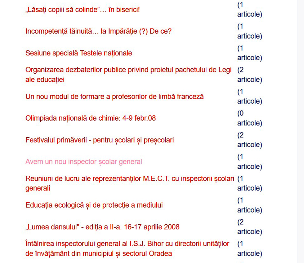 Accesăm www.ovidan.ro și intrăm (în stânga, la Menu) pe Inspectoratul Școlar Bihor. Deodată, avem în față Toate categoriile din: Concurs regional, Centre de informare și documentare, Concurs interliceal, Cursuri, Proiecte, O nouă disciplină opțională... 2009, 2010... 2026.