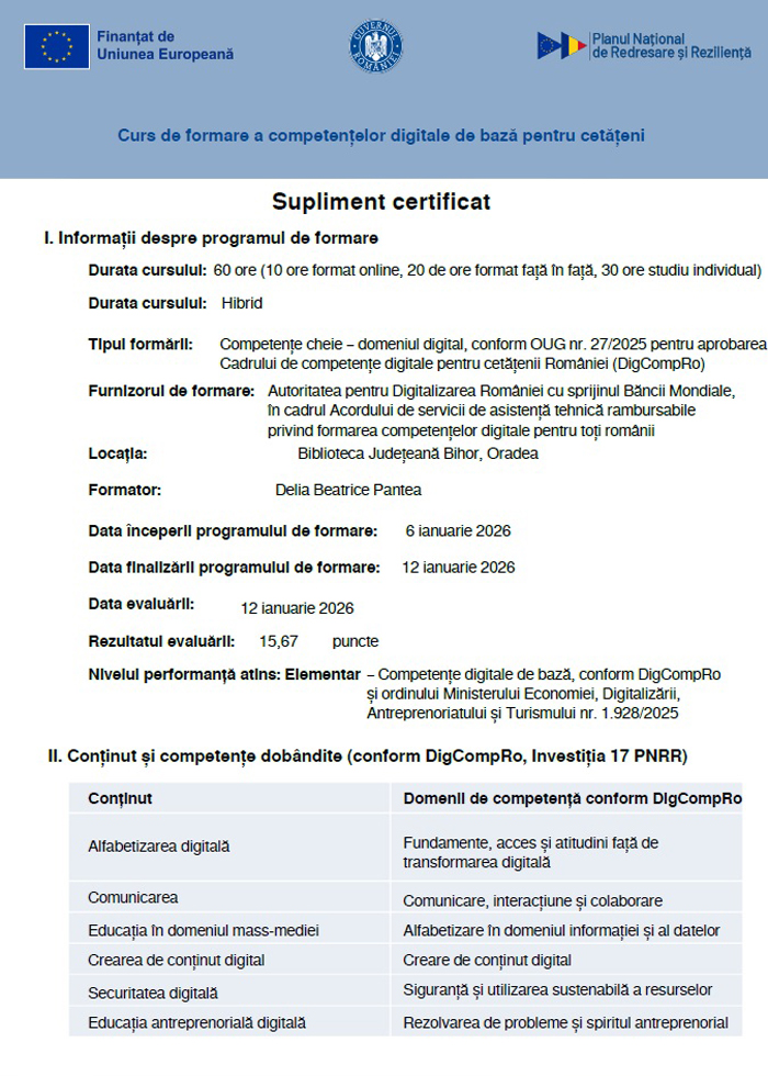 Este un curs pentru toate vârstele, cu o diplomă, cu supliment, semnată de ministrul Digitalizării.