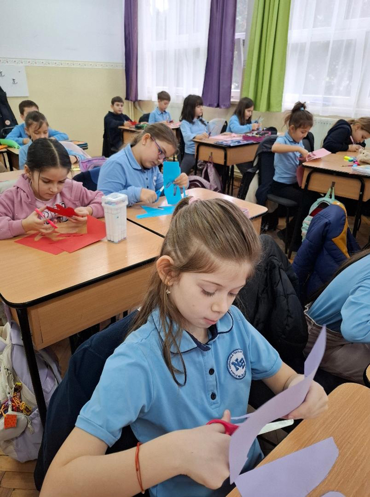 A urmat „Mâna prieteniei", unde fiecare copil și-a conturat palma pe foi colorate, a decupat forma obținută, apoi a scris pe degetele palmei mesaje precum: ,,Te ajut", ,,Vorbesc frumos", ,,Ajut la nevoie", ,,Ascult fără să întrerup", ,,Împart ce am", ,,Nu jignesc", ,,Cer iertare", ,,Împreună e mai ușor! Aleg să fiu un prieten/coleg bun!", evidențiind comportamente pozitive și nonviolente pe care le pot manifesta în relația cu colegii, prin care contribuie la menținerea unei atmosfere pozitive în clasă. Lucrările realizate au evidențiat dorința elevilor de a fi mai atenți și mai implicați unii față de alții.