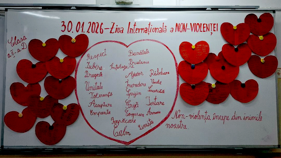 Cu prilejul Zilei Internaționale a Nonviolenței în Școală (30 ianuarie), elevii clasei a II-a D, de la Şcoala Gimnazială ,,Nicolae Bălcescu" din Oradea, au participat la o serie de activități de dezvoltare personală menite să promoveze respectul, empatia și comunicarea nonviolentă.