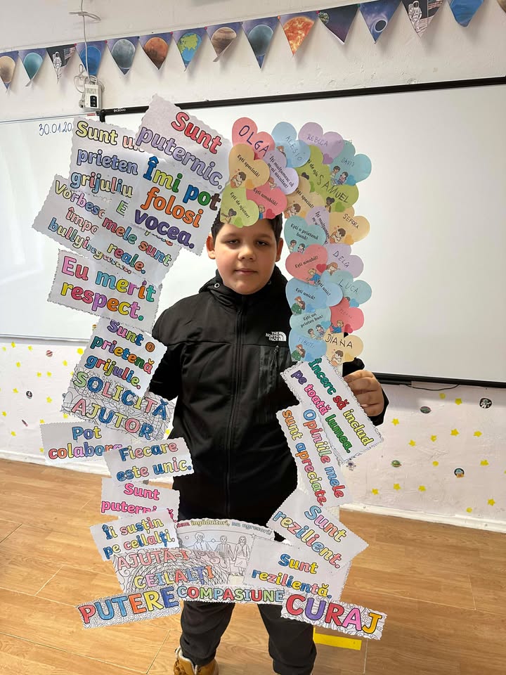 Departe de zgomotul pauzelor, elevii s-au așezat la mese pentru a reflecta asupra unui singur lucru: puterea cuvântului bun. Fiecare copil a pregătit bilețele colorate pe care a așternut gânduri, desene și promisiuni!