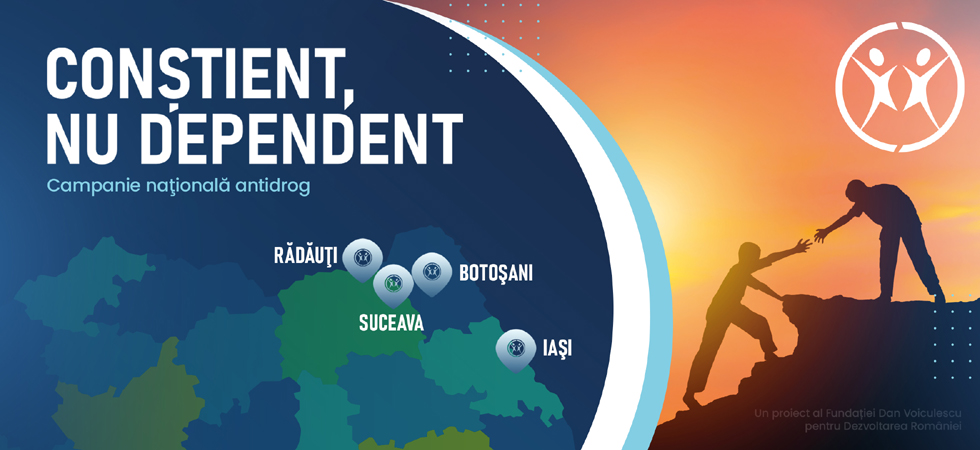 Fundația Dan Voiculescu pentru Dezvoltarea României extinde acțiunile campaniei naționale antidrog „Conștient, nu dependent" printr-o serie de întâlniri educative programate în județele Botoșani, Iași și Suceava. Între 10 și 17 februarie 2026, expertul antidrog Cătălin Țone și psihologul Fundației Dan Voiculescu pentru Dezvoltarea României, Gabriela Maalouf, vor discuta direct cu liceenii, profesorii și părinții, într-un demers de informare aplicată asupra riscurilor reale asociate consumului de substanțe interzise.
