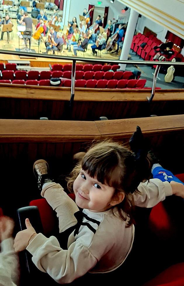 Punctul culminant al zilei l-a reprezentat vizita la sediul Filarmonicii de Stat din Oradea, unde preșcolarii au asistat cu emoție și curiozitate la repetițiile orchestrei. Contactul direct cu muzicienii și instrumentele muzicale a transformat experiența într-una memorabilă. De cum am pășit în sala de concerte Enescu - Bartók, sufletele noastre s-au deschis, iar sunetele muzicale au prins viață și au zburat purtându-ne într-o lume a emoției, a curiozității și a bucuriei