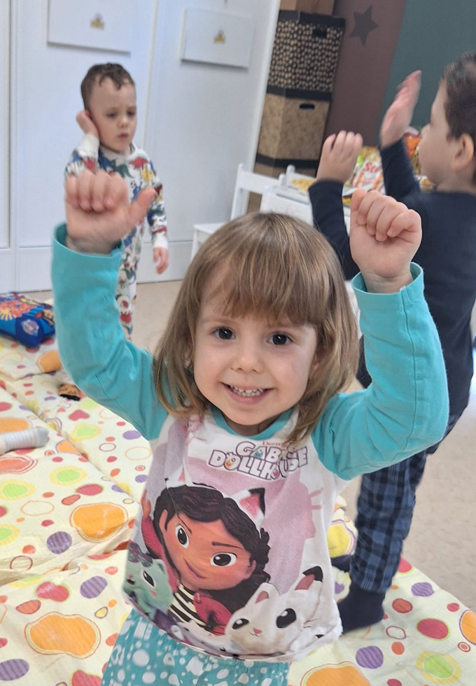 Ziua a continuat într-o atmosferă veselă, cu o „petrecere în pijamale", unde copiii au dansat, s-au jucat și au aplicat, prin joc, sfaturile primite, cele despre siguranță. La final, au vizionat un film animat despre trei ursuleți curajoși care au învățat cum să evite pericolele într-o călătorie lungă.