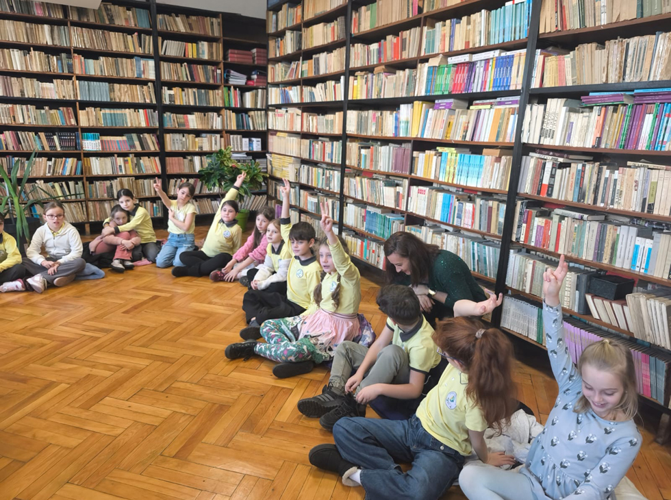 Jocul „Citește și ghicește" (care presupune extragerea unui cartonaș pe care este scris un fragment din cărțile citite, citirea textului și recunoașterea de către copii a cărții și a personajelor implicate) a animat atmosfera din bibliotecă, elevii fiind foarte activi și foarte pricepuți în identificarea titlului și a personajelor.