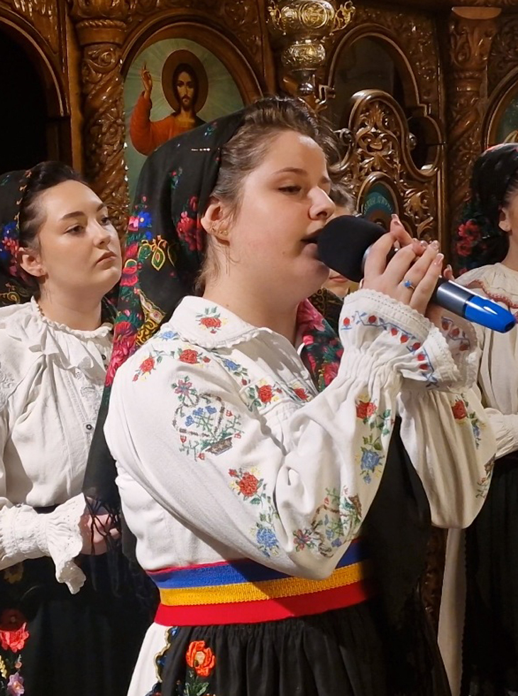 Un recital de pricesne, susținut de membrii grupului ,,Corinteii” al Liceului de Arte din Oradea