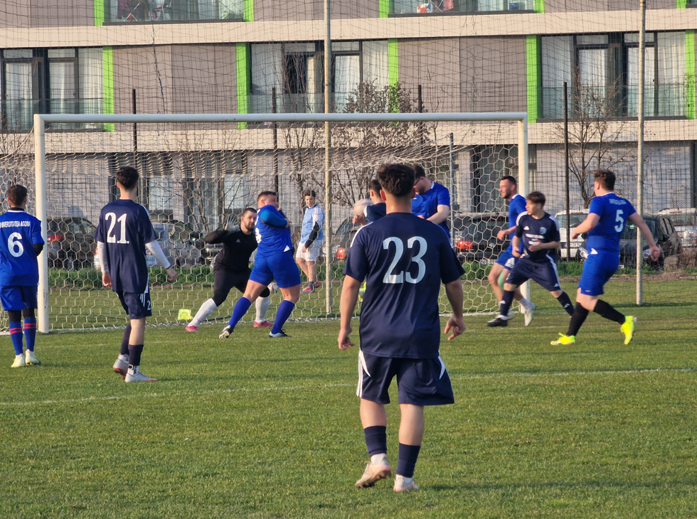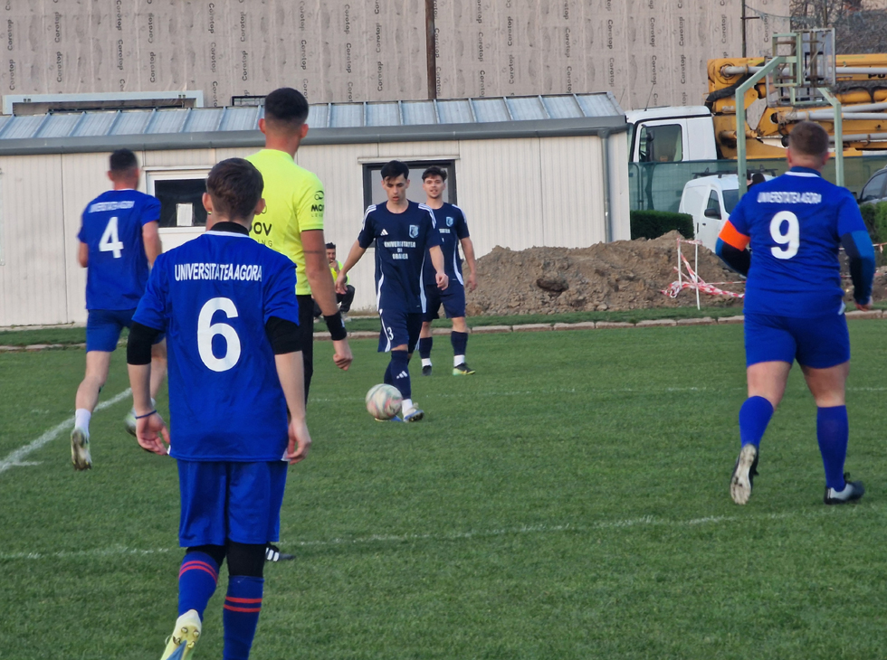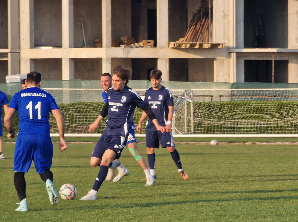 Marți, 24 martie 2026, în cadrul primei etape din cadrul Campionatului Național Universitar de Fotbal, echipa Universității ,,Agora" a întâlnit, în deplasare, naționala 1 a Universității din Oradea, pe terenul acesteia, o echipă solidă, redutabilă de profesioniști, vicecampioană națională, titlu câștigat anul trecut, în finala campionatului național, finală câștigată de echipa Universității de Vest din Timișoara.