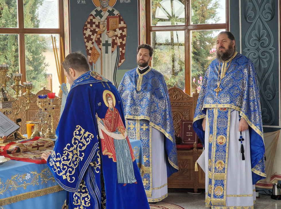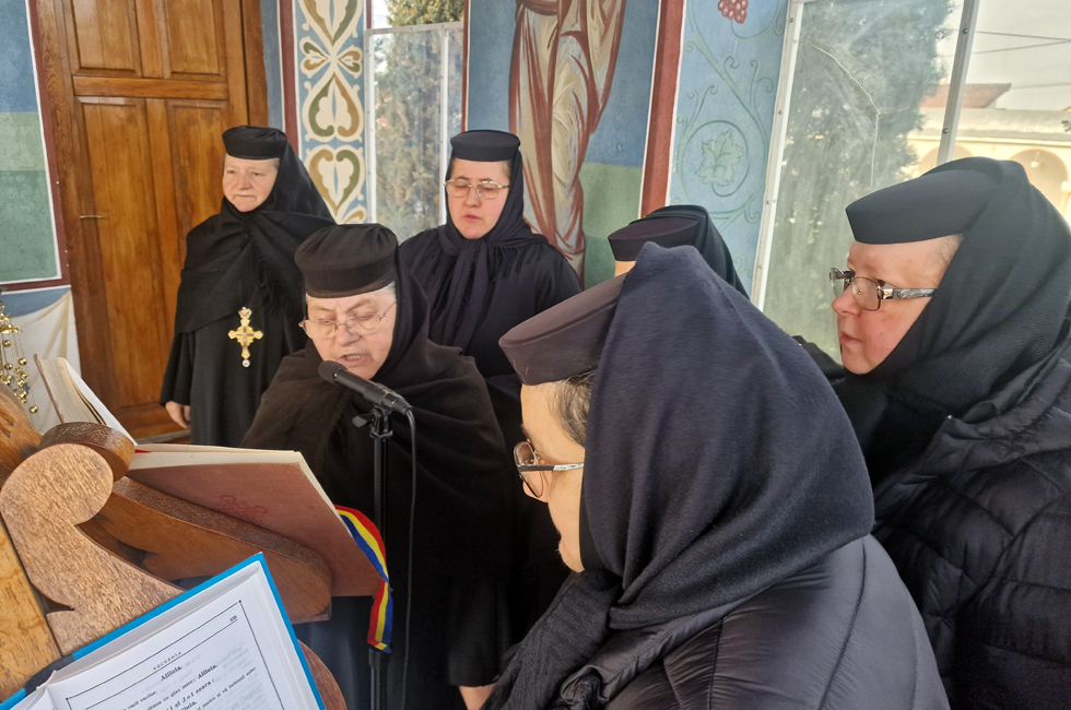 Astăzi, la Mănăstirea ,,Buna Vestire" din Oradea, sfânta şi dumnezeiasca Liturghie a fost săvârșit de Preasfințitul Părinte Episcop Sofronie, dimpreună cu un sobor de ieromonahi, preoți și diaconi, cu Preacucernicul Părinte Arhimandrit Atanasie Paleu, preacuvioasa maică stareță stavrofora Pavelida Bădilă, stareța mănăstirii, cu preacuvioasa stareță stavrofora Mina Bădilă, stareța Mănăstirii ,,Sfânta Cruce" și grupul de maici.